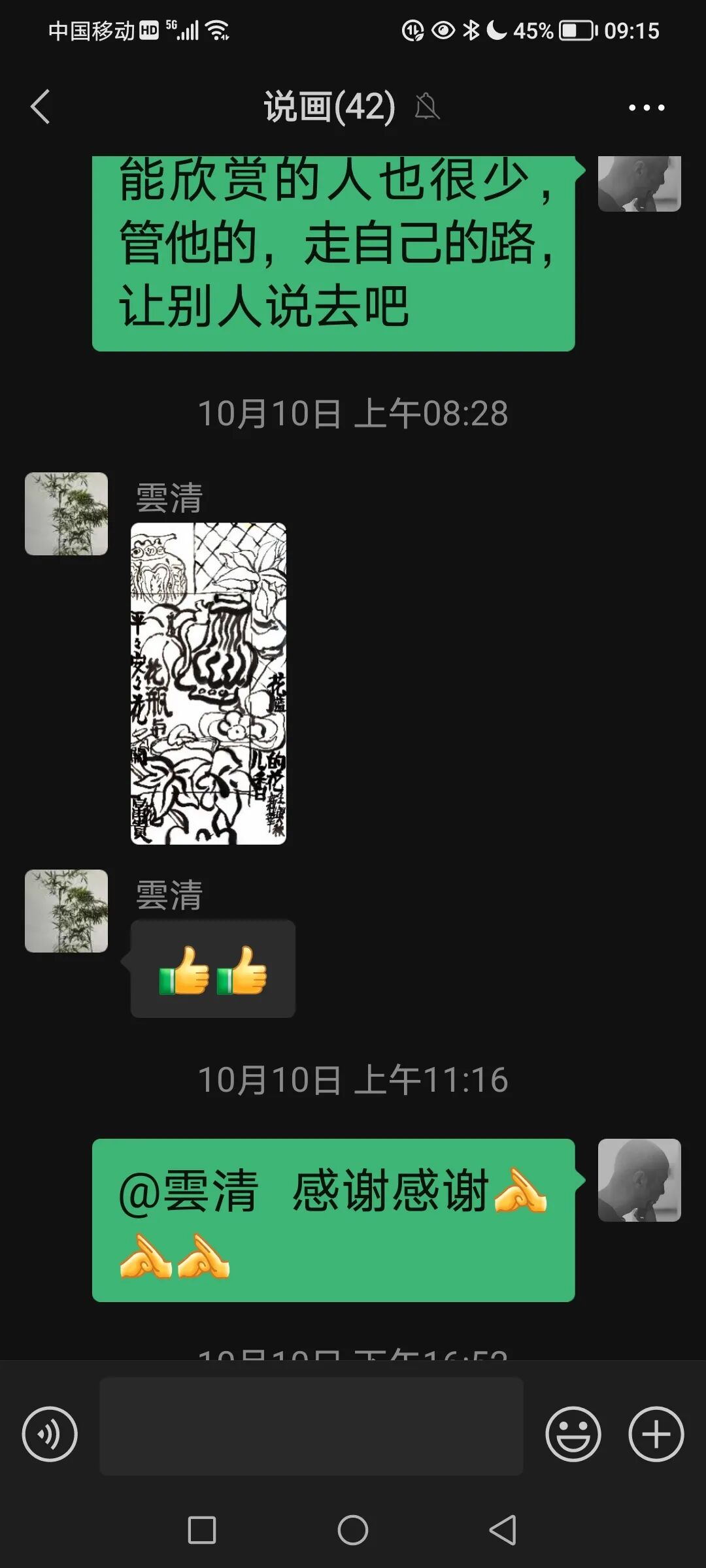 刘牧:各位同道,当你画画的时候,知道了笔墨的妙处,可贺,你已经入门;当你看别人的画,知道了笔墨的妙处,更可贺,你又上一层楼,知道了属于自己心的笔墨。[合十][合十][合十][抱拳][抱拳][抱拳,属于自己心仪的笔墨[呲牙]
