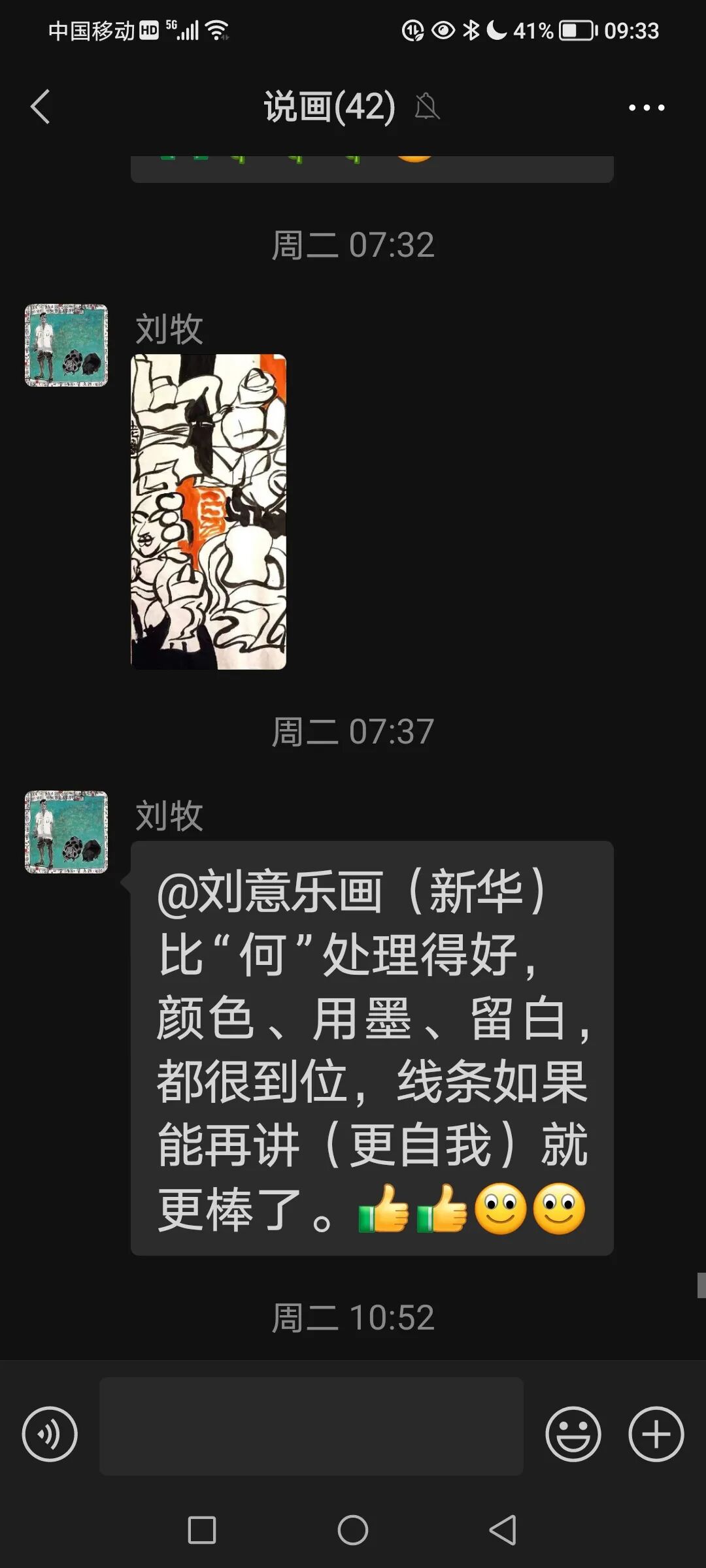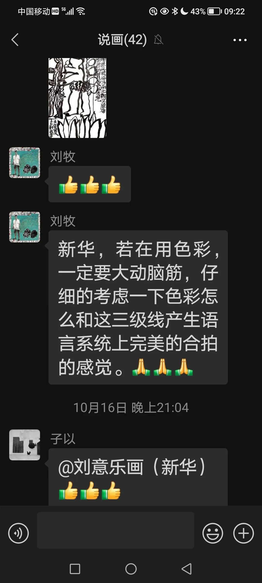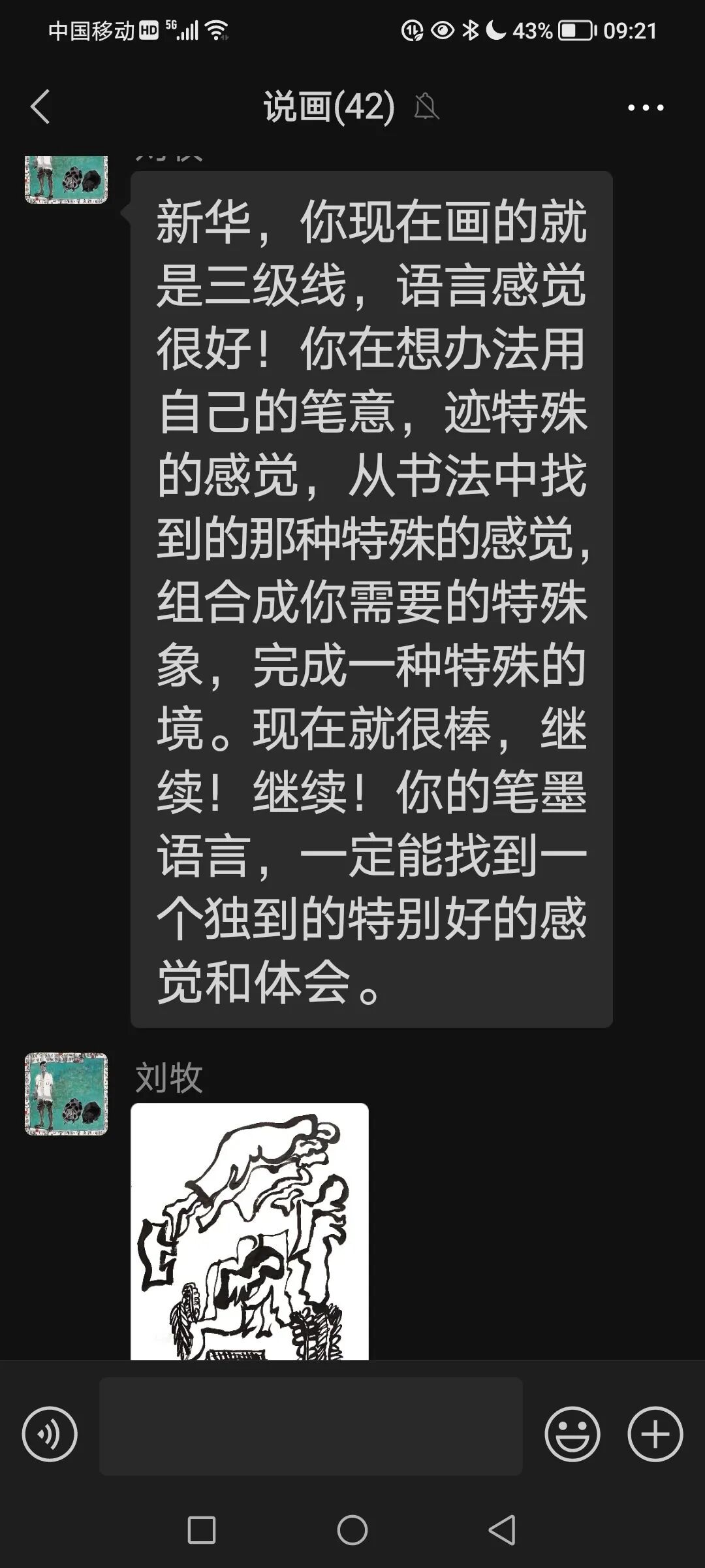 近来,学徒刘新华同他的老师刘牧进行了一些网上的对话。刘新华把每天的绘图探索作品发给老师刘牧的学生群,供老师指到点评。现记录部分对话如此。