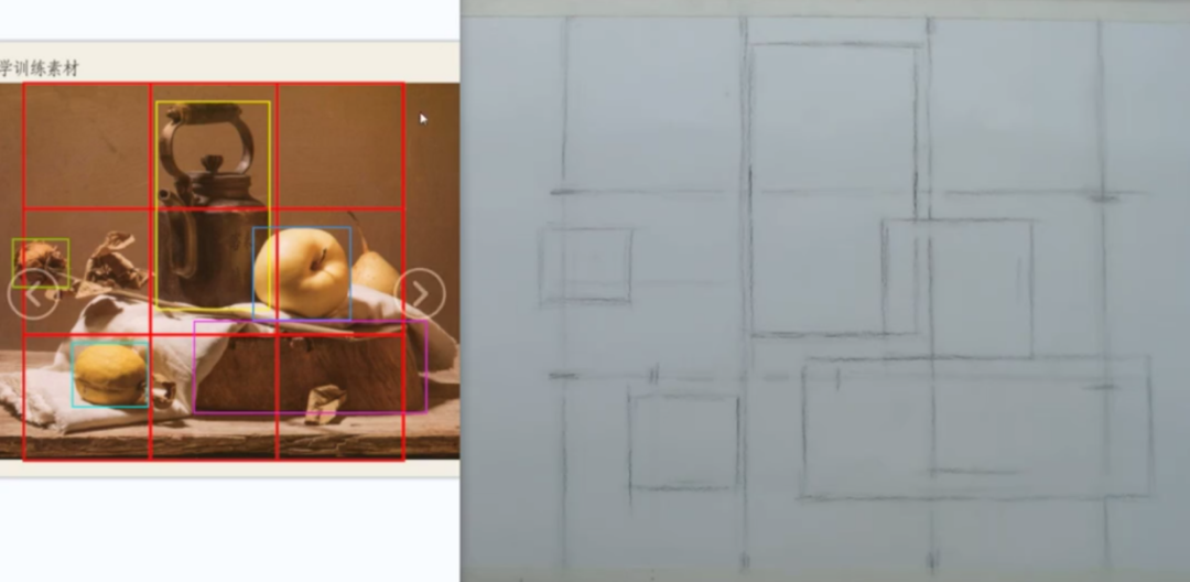 构图起形(先观察再勾出物体基本轮廓):开始构图可以借助水平线、垂直线或关联线画出物体整体位置关系及基本形。找出物体轮廓的细微变化及明暗交界线的位置。该阶段用笔须淡、松动,用复线表达。画面突出主次,宾主分明,将主体物安排在视觉中心的位置,注意构图饱满,物体要大小适中。(注意:形不准不要往下画,不然到了后边都会变成伤筋动骨的大手术)