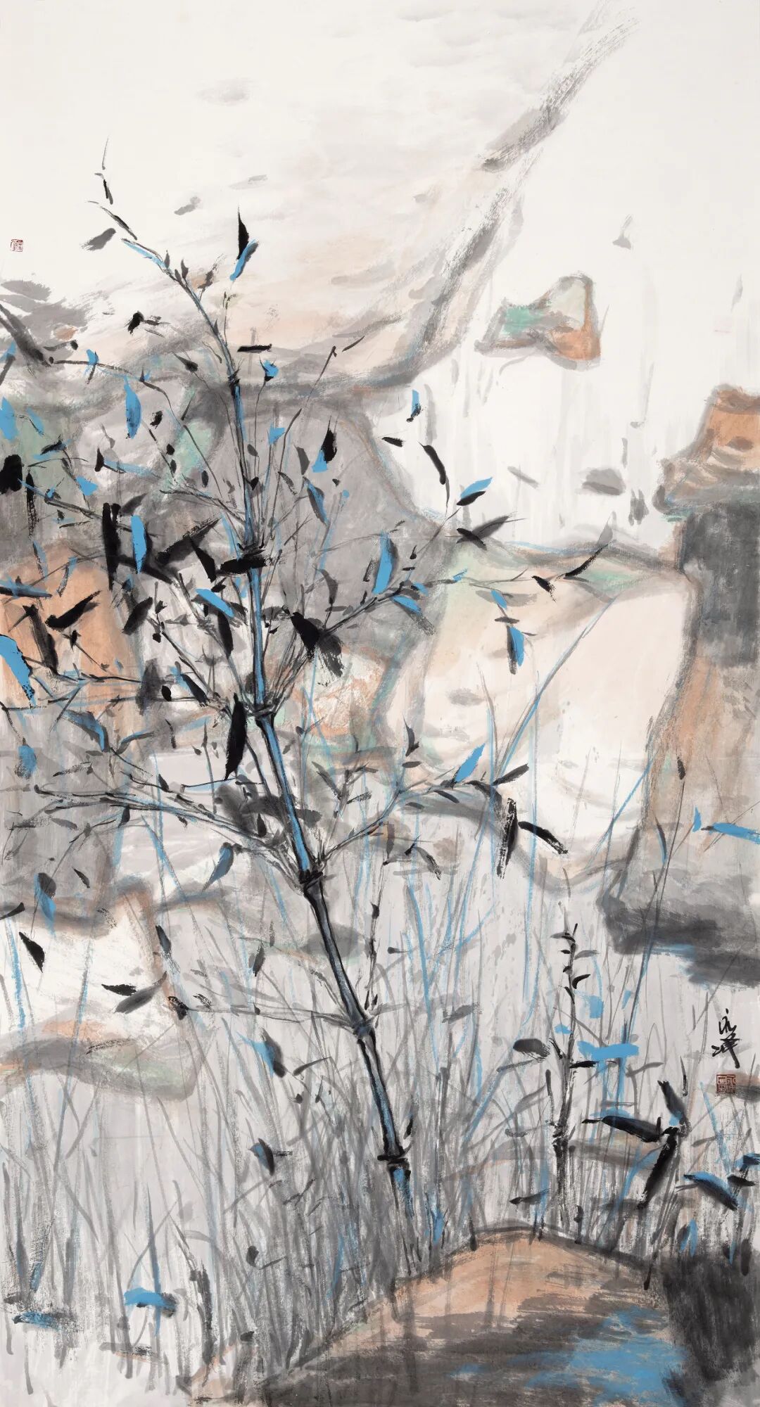 青竹攒石生 ║ 138cm×68cm ║纸本设色 ║ 2020年