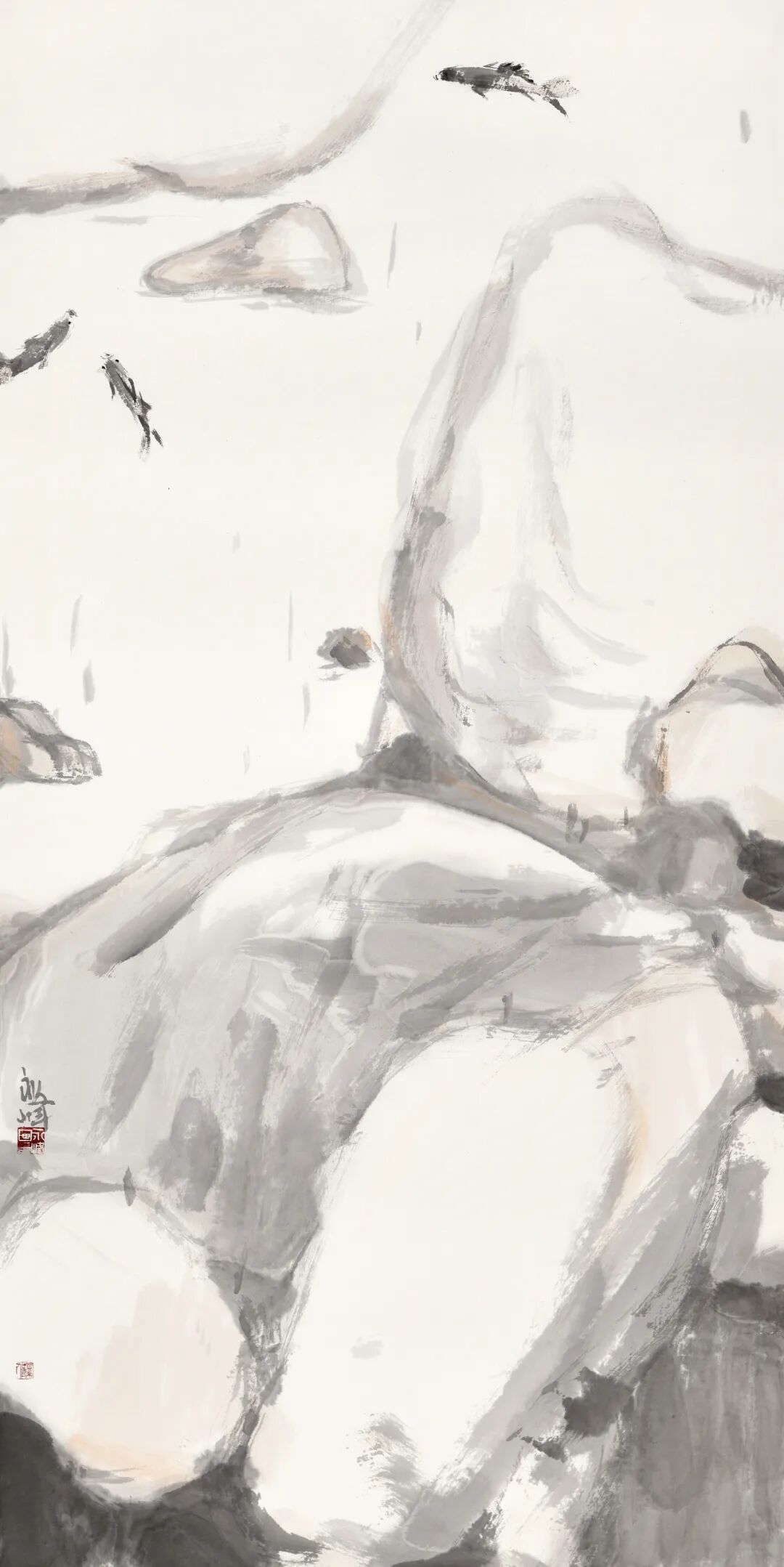 在风中 ║ 180cm×52cm ║纸本设色 ║ 2020年