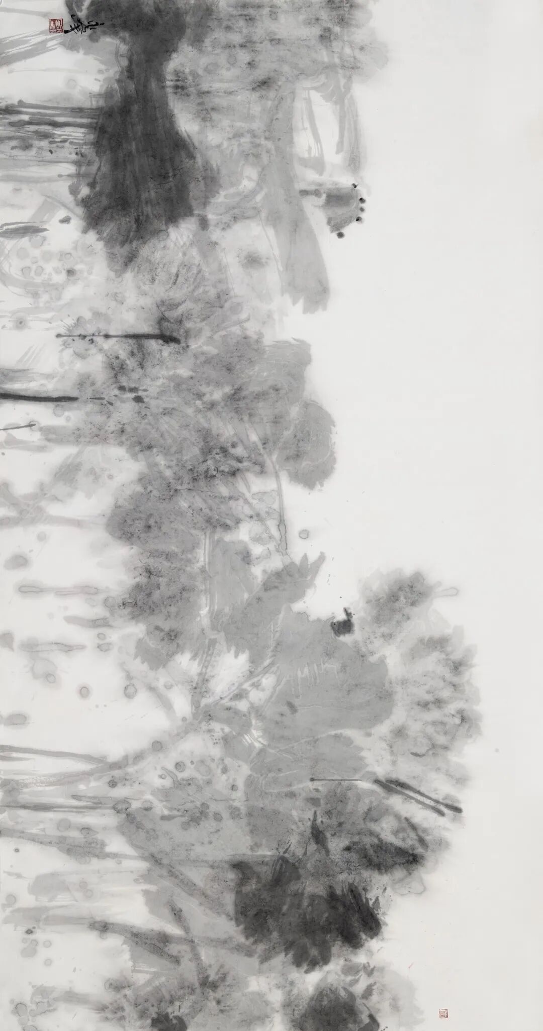 荷风细雨 ║ 180cm×90cm ║纸本设色 ║ 2022年