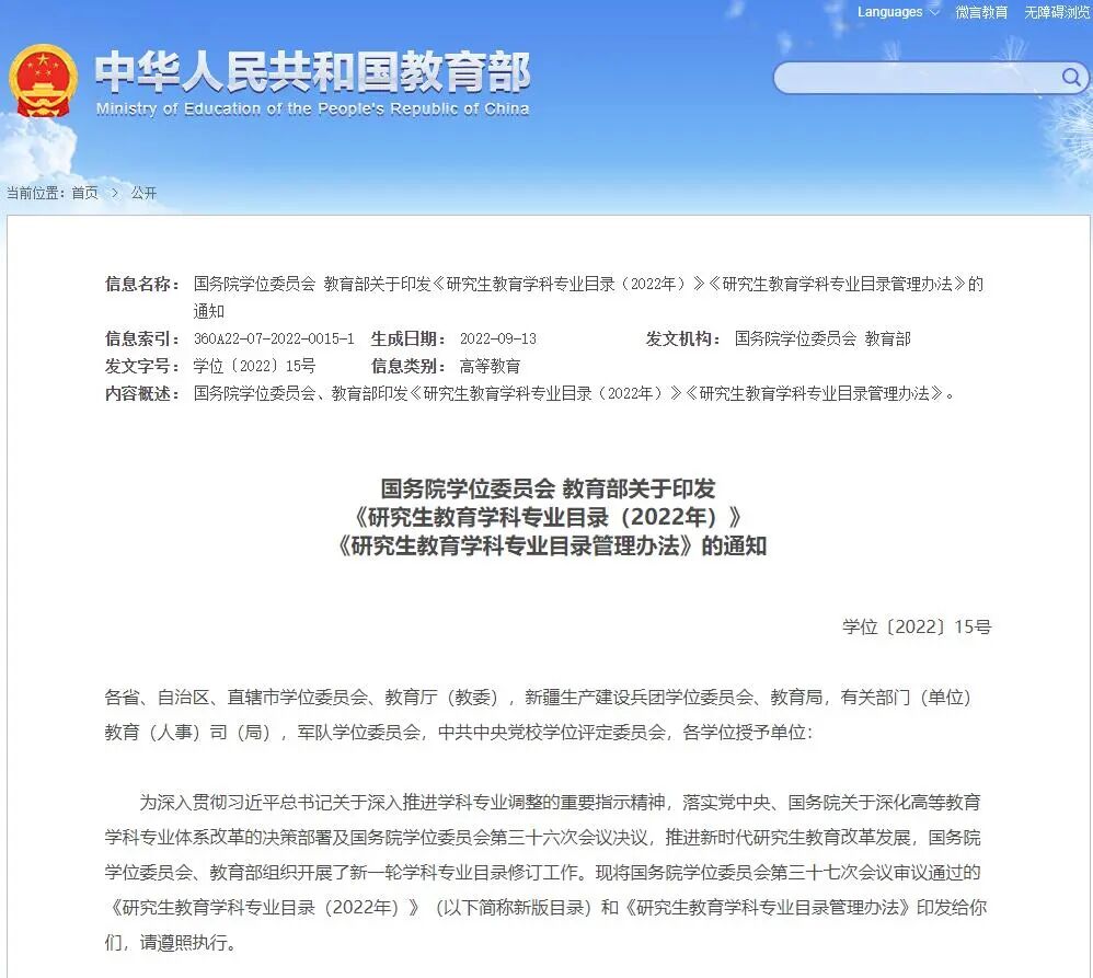 文件同时明确2023年下半年招生工作将按新版目录进行,未来仅可授予硕士、博士专业学位!