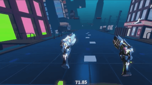 • Shooting Star:将音乐与传统轨道射击相融合的玩法,玩家在关卡中会自动前进,需要用手中的双枪消灭不断出现的敌人,期间还得通过移动身体和下蹲来躲避子弹与障碍物。根据歌曲的曲风,场景也会有相应地改变。