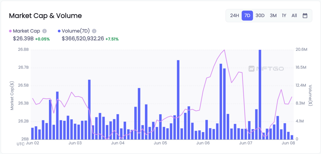 而根据NFTgo.io的最新数据,截止2022年6月8日,NFT市场总规模达到了263.9亿美元,交易量达到了3.67亿美元,持有地址237.5万个,交易地址143391个。