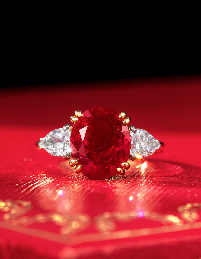5.32克拉椭圆形缅甸天然鸽血红红宝石戒指