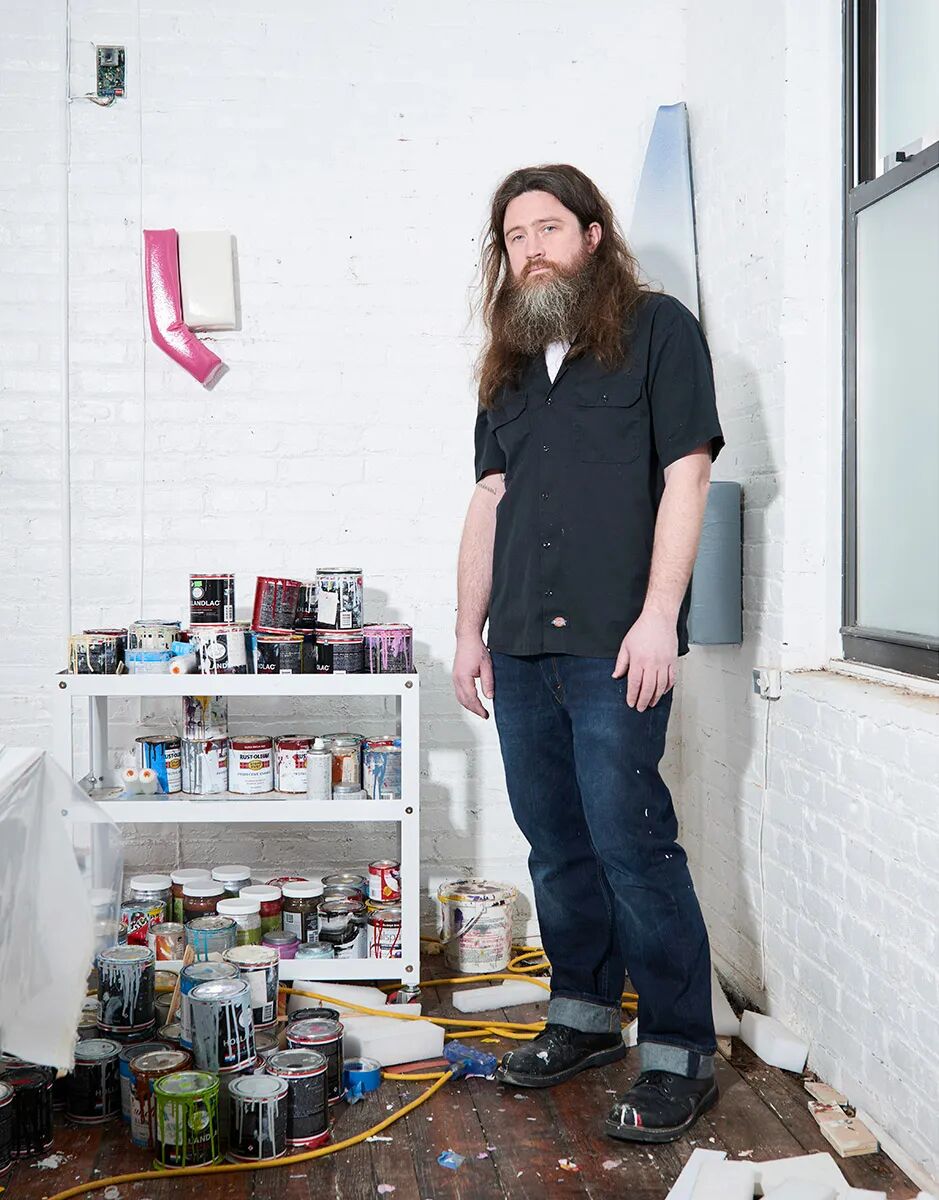 美国艺术家贾斯汀·艾迪恩( Justin Adian)于1976年出生于德克萨斯州沃思堡,现工作生活于纽约。艾迪恩先后获得北德克萨斯大学艺术学士,以及罗格斯大学艺术硕士学位。其标志性作品模糊了绘画和雕塑之间的边界,运用缤纷色彩制作抽象的墙上浮雕,在两种艺术语言之间游走,并同时借鉴这两种媒介形式的特色之处。这样独具特色的创作,灵感源自艾迪恩曾看过的一件约翰·张伯伦(John Chamberlain)泡沫雕塑作品,“我当时便被泡沫材料深深的吸引,于是我找也试图以泡沫制作雕塑,但没有成功。而我很熟悉画布的特性,于是我就尝试在泡沫上拉伸了一块画布。忽然间,它看起来就像一个枕头。我便开始在方形胶合板上,覆盖在泡上的画布开始作画,” 艾迪恩忆道。对他来说,自己的尝试带来了非常有趣的转折,长方形画布突然就变得自然有机,让人感到亲切舒适。