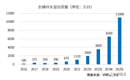 陀螺研究院数据显示,2021年全球VR头显出货量为1110万台,较2020年增长了66%,其中Oculus Quest 2年度销量为880万台,VR已经完成了从B端向C端的突破,正式开启了消费级市场之路。