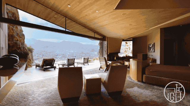 与其他办公区不同,私人办公室被套嵌在岩石中,坐落在高山上,是整个住宅的至高点。