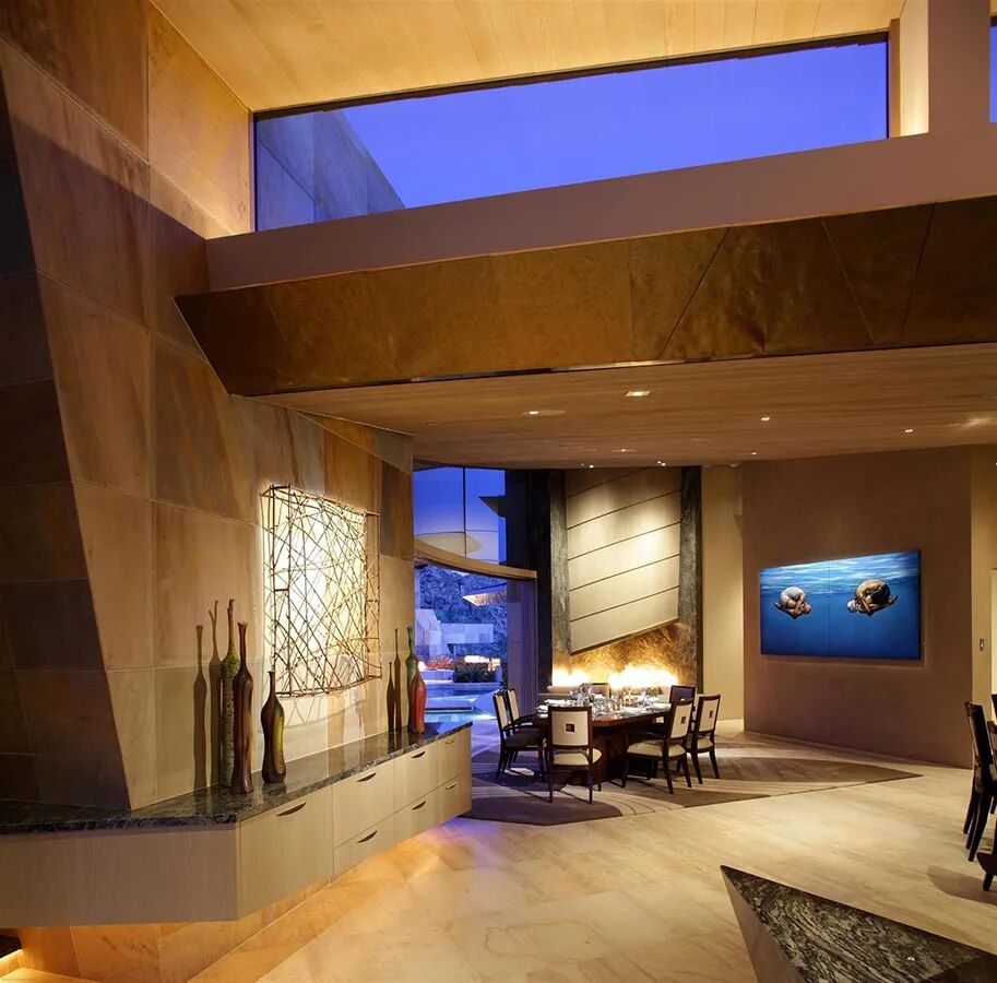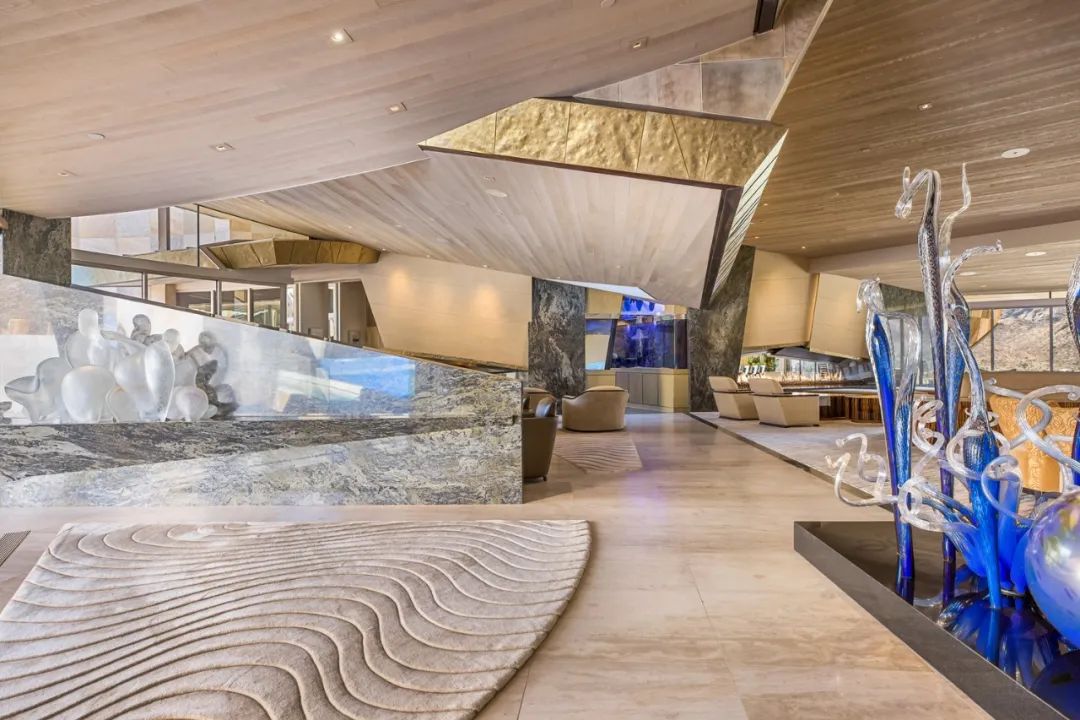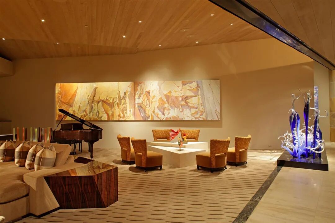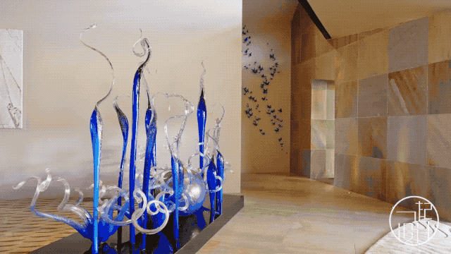 进入主楼客厅,入口可看到戴尔·奇胡利(Dale Chihuly)的雕塑作品,彰显屋主的品味,欢迎客人的到来。
