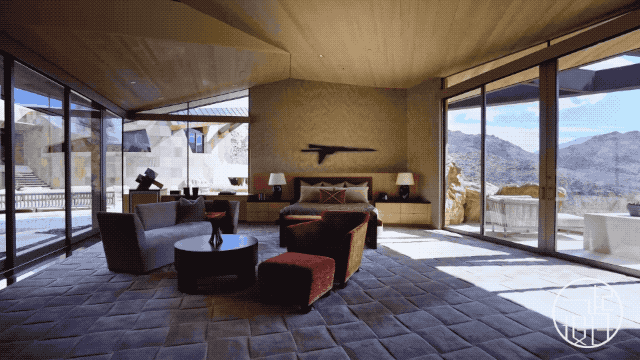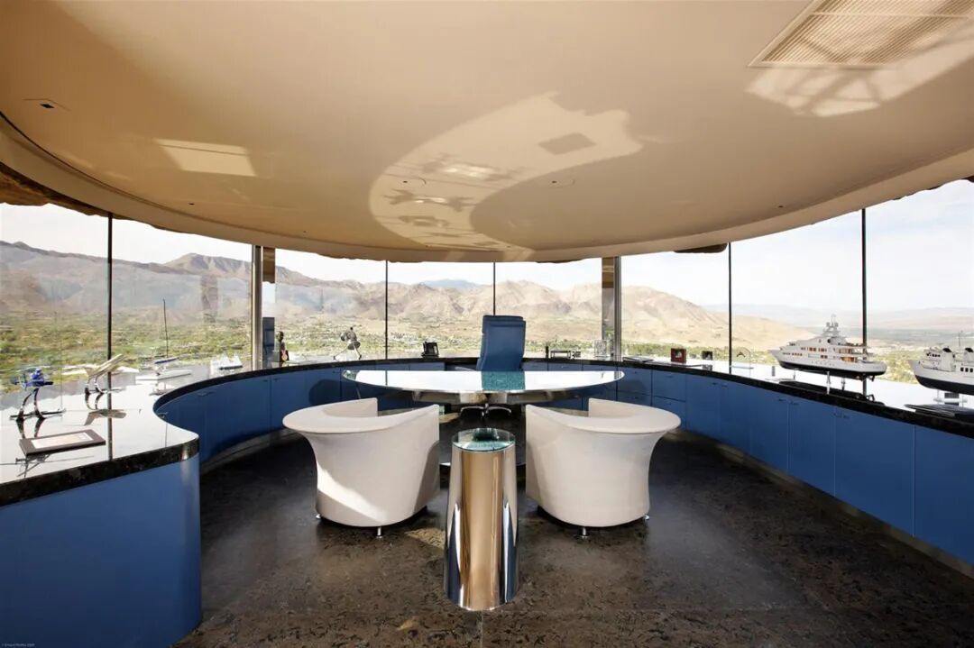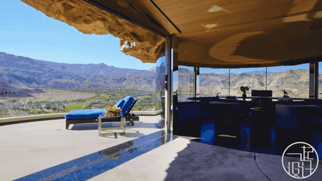 与空间形态走向吻合的储物柜面上,放置主人收集的模型,最中间即是“老板”的位置,可270度无死角欣赏palm desert的风景。