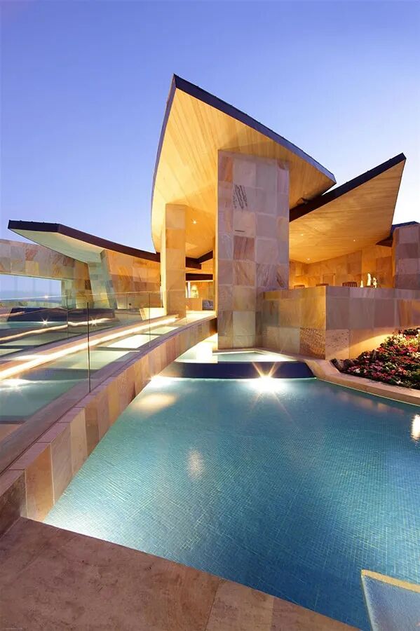 泳池也是由三个花瓣儿形泳池堆叠而成。