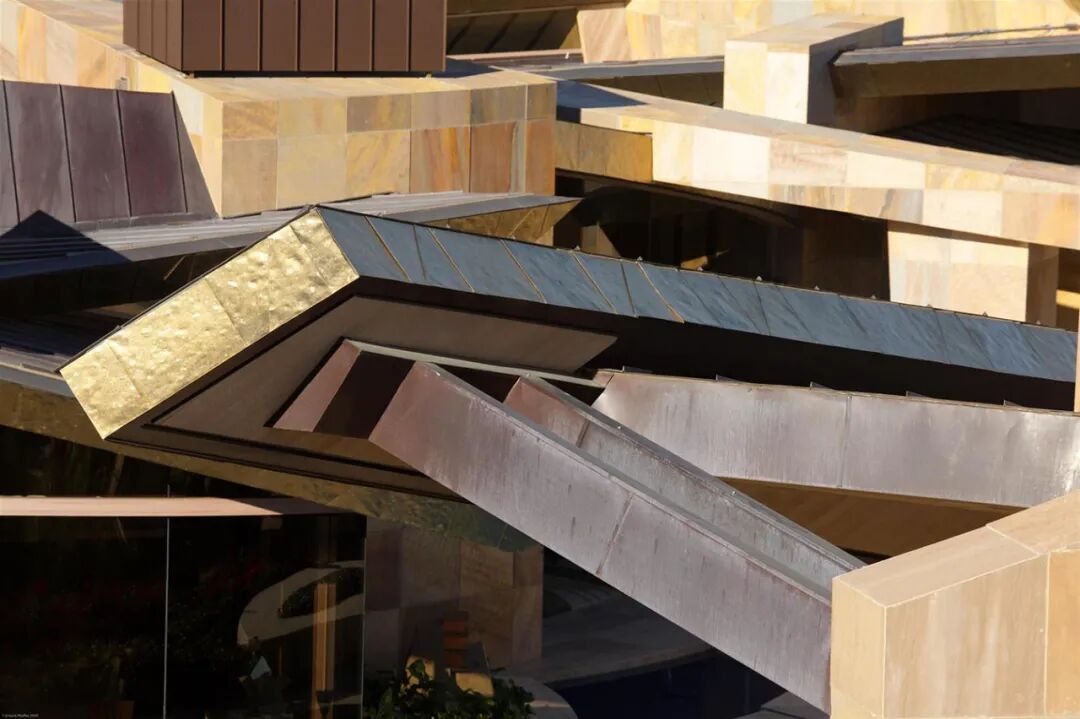 波浪纹地毯呼应着建筑的曲线,如同山地的脉络。