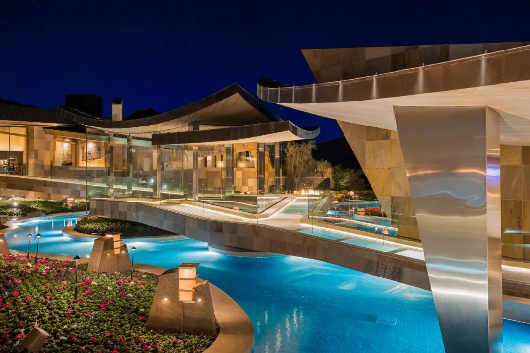 豪宅由7间卧室、12间浴室、6个厨房、工作室、车库和多个私人聚会区组成。
