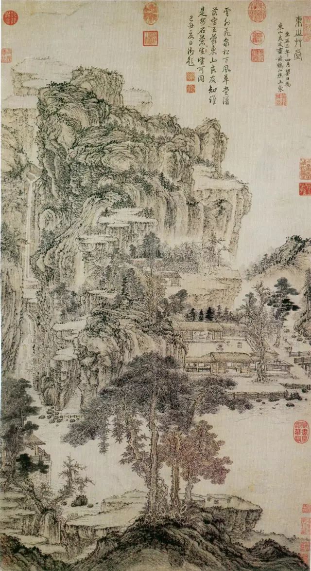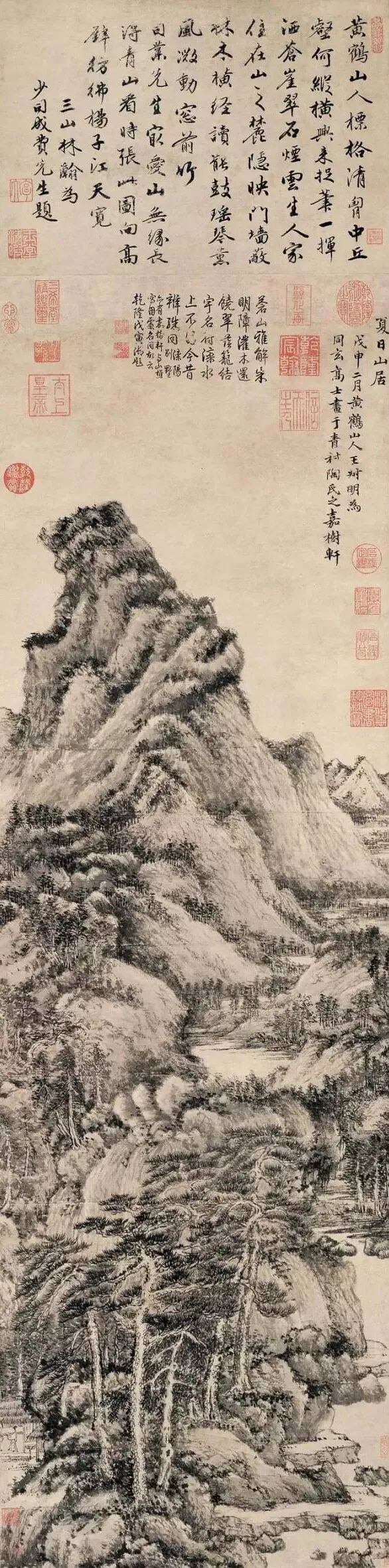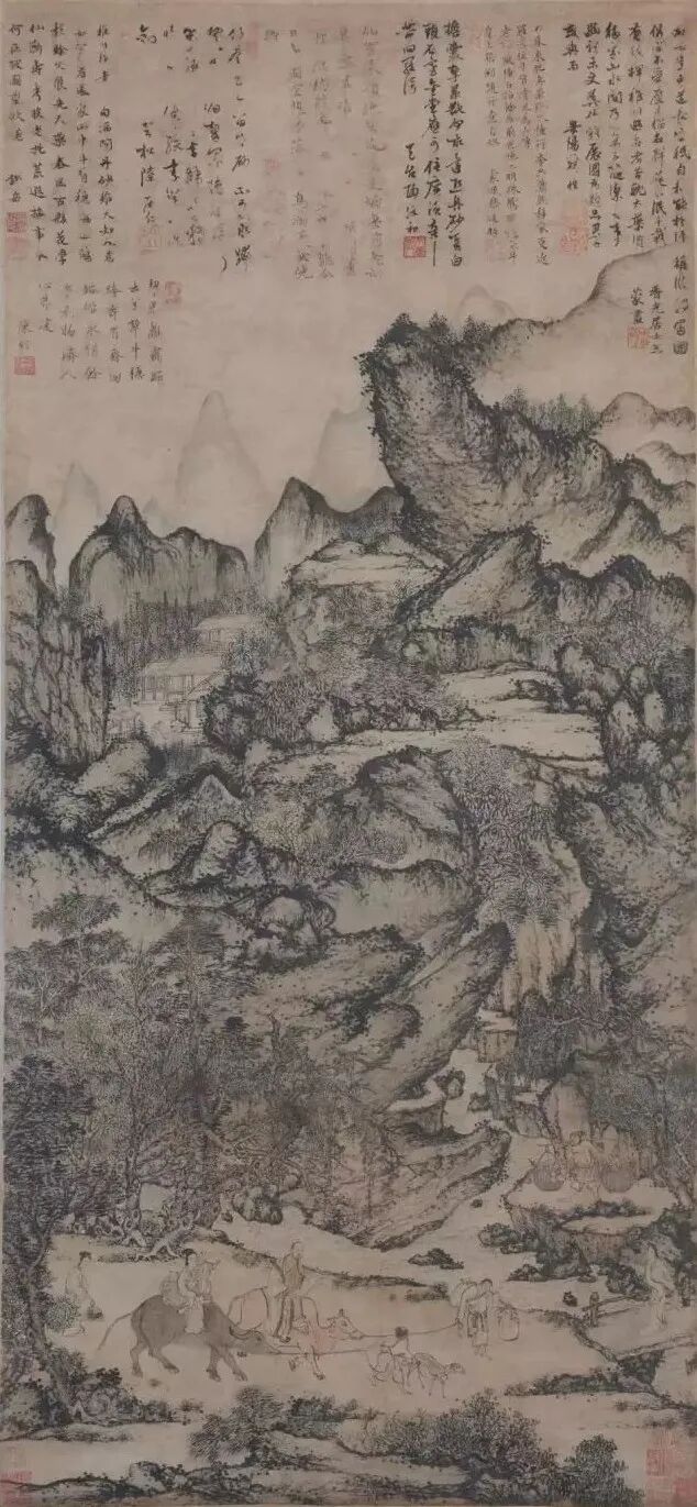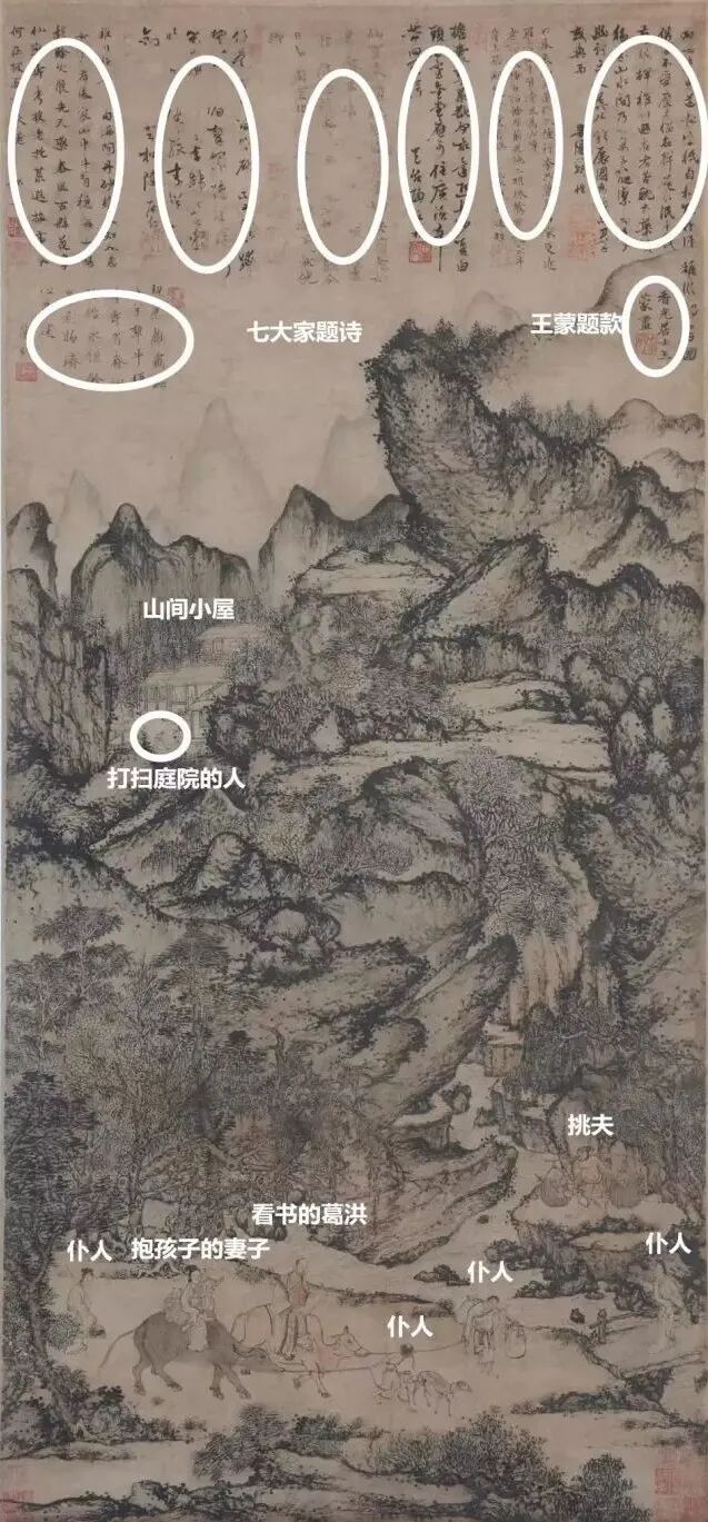 干货2023-08-21 价值4个亿的古画,背后藏着怎样的动人故事? 编者按 一幅画,四个亿! 《稚川移居图》 以其精妙的笔墨、传奇的身世, 在历史风雨中辗转八百年后, 一出现在人们的视野, 竟毫无悬念地成为 中国拍卖史上最昂贵的古代画作。 4个亿在业内人看来正常, 可一般人看来这个数字实在匪夷所思。 一幅描绘搬家场景的古画, 何以值4个亿呢? 又是哪位名家画的? 搬家的人是谁? 他为什么搬家? 他又搬去哪里呢? 今天,我们就一起来看看 这幅天价古画的背后的故事! 元 王蒙 《稚川移居图》 画中的搬家人究竟是谁? 我们首先来了解《稚川移居图》整幅画的构成: 《稚川移居图》描绘了东晋人葛洪携带家眷移居罗浮山,修道炼丹的故事。罗浮山位于今天广东省博罗县境内。画中骑在牛背上的葛洪是东晋道教学者、著名炼丹家。只见他身穿道袍,神情专注于手中的书卷,边走边看,全然不顾随他同行的家人。 手持画卷的葛洪与照料孩子的妻子 他身后,妻子和几个孩子同骑在牛背上,小的孩子被抱在怀里,大的则坐在身后。随葛洪夫妇一起移居的,还有几个仆人,他们或提着鸡笼,或牵着牛羊,或挑担负重,把一家人的生活必备之物搬运到山上。 搬家一行人 一路崇山峻岭,飞瀑流泉,几间茅草屋掩映在深山之中,屋前的庭院里,先行到达的仆人,在打扫庭院,迎候主人的到来,画面十分有感染力。 整幅画运用焦墨,间浅赭色。峰峦叠嶂,楼阁参差,整个画面显得生动细腻,笔墨沉酣,不愧为王蒙的成熟代表作。画卷上方留白处,依稀可见王蒙题款,以及七位重量级名家的题诗: 韩性款题诗:避世岂中道,长生秪自私。能于污俗间,不受尘土缁。名声遂不泯,千载有余晖。稚川逃名者,苦就大药资。移家山水间,乃□妻子随。洁□事幽□,未使彝□□,展图为题品,君子或与而。安阳韩性。钤印:明善、子孙世昌 乐远款题诗:不暮乘肥与荣□,□僮行李只潇然。移家更近罗浮住,牛背清风万古传。老□痴僮百指余,母前光抱二明珠。鸳联稳坐牛身上,琴剑随行意自娱。蒙城乐远题。钤印:平生真赏 陶復初款题诗:担囊挈累欲何求,还恐丹砂负白头。石室金堂应可住,底须辛苦回罗浮。天台陶复初。钤印:介轩老人 倪瓒款题诗:仙翁乘犊晓登途,后是娇妻前老奴。湛湛露华沾□□,□□□□□照明,芦□隐约龙□□,□□紫□□□驱,今日□图空想像,落□□鸟满□壶。倪瓒 陆居仁款题诗:□□□□留,丹砂不可求。跨□□□□,挈累隐罗浮。□□□□□,韩□转□□。□□□孩素,□□□剑□。云松陆居仁 钱岳款题诗:稚川行素□,句漏问丹砂。鸡犬知人意,□□看处家。山中牛背稳,海上鹤程赊。火候先天药,春风古县花。学仙祈寿考,投老托荒遐。抚事今何在,披图重欲嗟。钱岳。钤印:金盖山人 陈则款题诗:挈累离羁归去兮,犁牛稳跨寿眉齐。陶镕鉴汞犹余事,利物济人心弗迷。陈则。钤印:陈则之印 史上最贵的一次移居,背后竟另有隐情! 葛洪像 葛洪全家人的这次移居,可谓是史上最贵的移居了!他为何搬家?搬家的这种鸡毛蒜皮的小事儿为何竟能流芳千古?关于这点,其背后有个为世人津津乐道的故事。 据说,画中人葛洪祖上都是显赫的高官。葛洪因战场立功,被封为“伏波将军”,此后屡次升迁。面对官场的得意,葛洪心里却非常冷静,在政治昏暗,社会动荡的情况下,一切荣华富贵都是虚无的,所以他看破红尘,一心修道。 此为北京故宫博物院藏移居图另外一个版本《葛稚川移居图》,也出自王蒙之手,画中牵鹿人为葛洪。 当朝廷再次向提拔他时,他婉拒了,并请求去广西做名县令,想就近在那采丹砂炼丹度过余生。得到皇帝的允许后,葛洪就带着全家人搬家。当他走到广东的时候,被当地的官员挽留,隐居在罗浮山里修道炼丹。最后,葛洪就老死山中,后人传说他羽化成仙了。 巧的是,王蒙的人生经历,与葛洪非常相似,做过官,后因社会动乱,朝政衰弱,产生了归隐的念头,于是把葛洪作为了自己的精神寄托和灵魂偶像,想做个那样的世外高人,画了这幅隐逸山水画。 画家王蒙 整幅画,从布局上看,多采用重山复岭,萦回曲折的体势,山高林密、涧曲谷深,一派宏深俊伟的气象。王蒙的山水以凸现自然界雄豪郁勃的生命力量为媒介,曲折地传导出画家对浑浊世道的不满和不甘的情思。 王蒙在创作完这些影射隐逸理想的画作后,就因社会动荡,而效仿葛洪去了浙江余杭的黄鹤山隐居。所以,王蒙画的是葛洪,实际也是他自己,葛洪的高风亮节,也是自己内心的真实写照。 元朝灭亡,明朝建立后,年过花甲的王蒙再度出山,做了泰安知州。后因与密谋造反的官员有交往,被捕且死于狱中。王蒙死后,这幅画更是经历坎坷,它曾被晚清民国历史上蜚声中外的收藏世家苏州过云楼珍藏,视之为珍宝。 虽遇贵人,但身逢乱世,屡遭劫难。1937年,日本人轰炸苏州,顾家也未能幸免。大部分藏品化为灰烬,《稚川移居图》因藏得隐蔽,故避过一劫。此后,顾家后人连夜把《稚川移居图》和其他藏品转移到上海租界。 王蒙 《花溪渔隐图》 台北故宫博物院藏 王蒙 《素庵图》 大都会艺术馆藏 文 Ge 期间,顾家遭遇抄家,大批书画均被查抄,《稚川移居图》就是其中一幅。据说,《稚川移居图》被抄后,一位顾家后人以为永失此图,极度绝望下,纵身跳入冰冷的苏州河。 1977年,中国古代书画鉴定家钟银兰与书画鉴定权威郑为、承名世一起到苏州博物馆,鉴定一