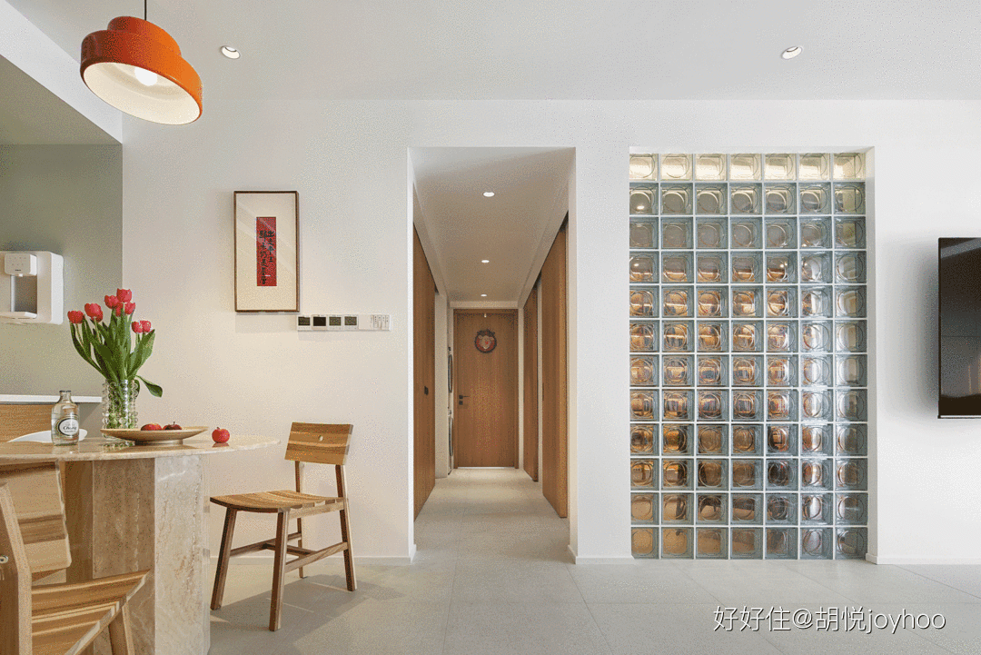 住友@胡悦joyhoo 家的玻璃砖用于分隔书房和客厅,大大增强了通透性。