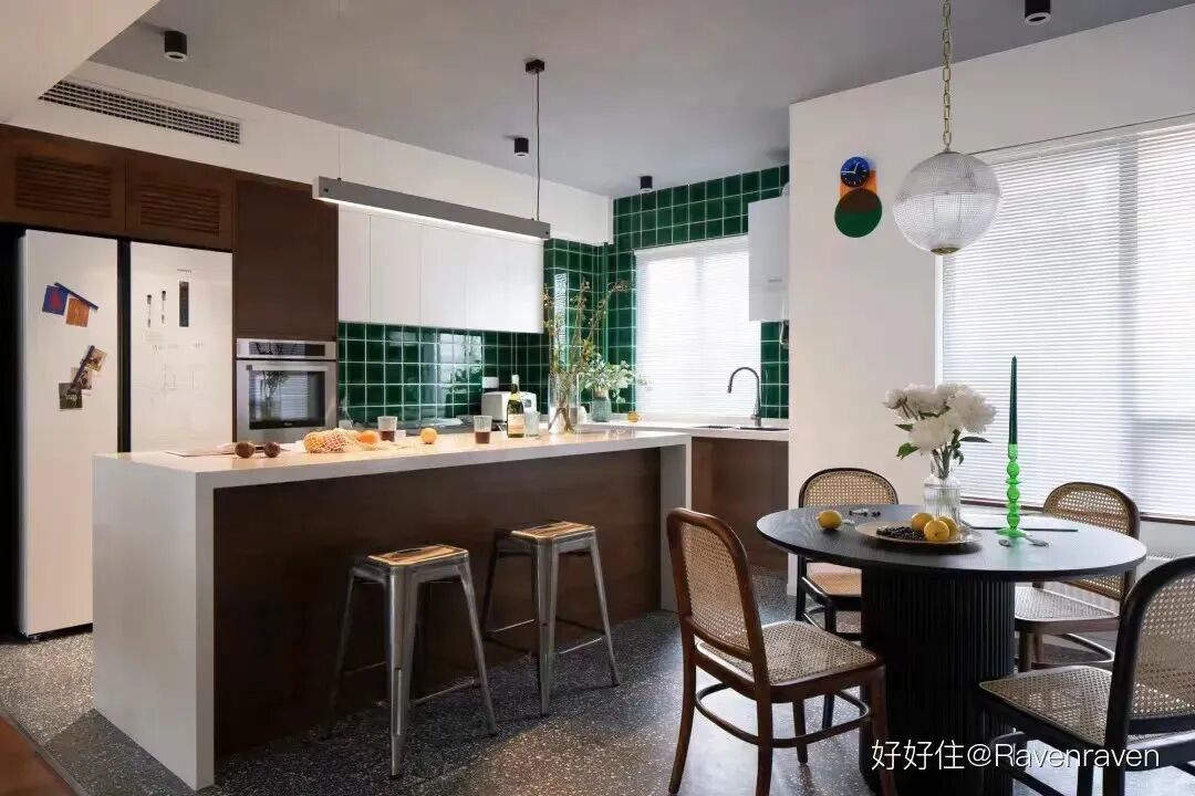 住友@Ravenraven 的家就用了开放式厨房+岛台的形式,社交属性很强,告别孤独烹饪。