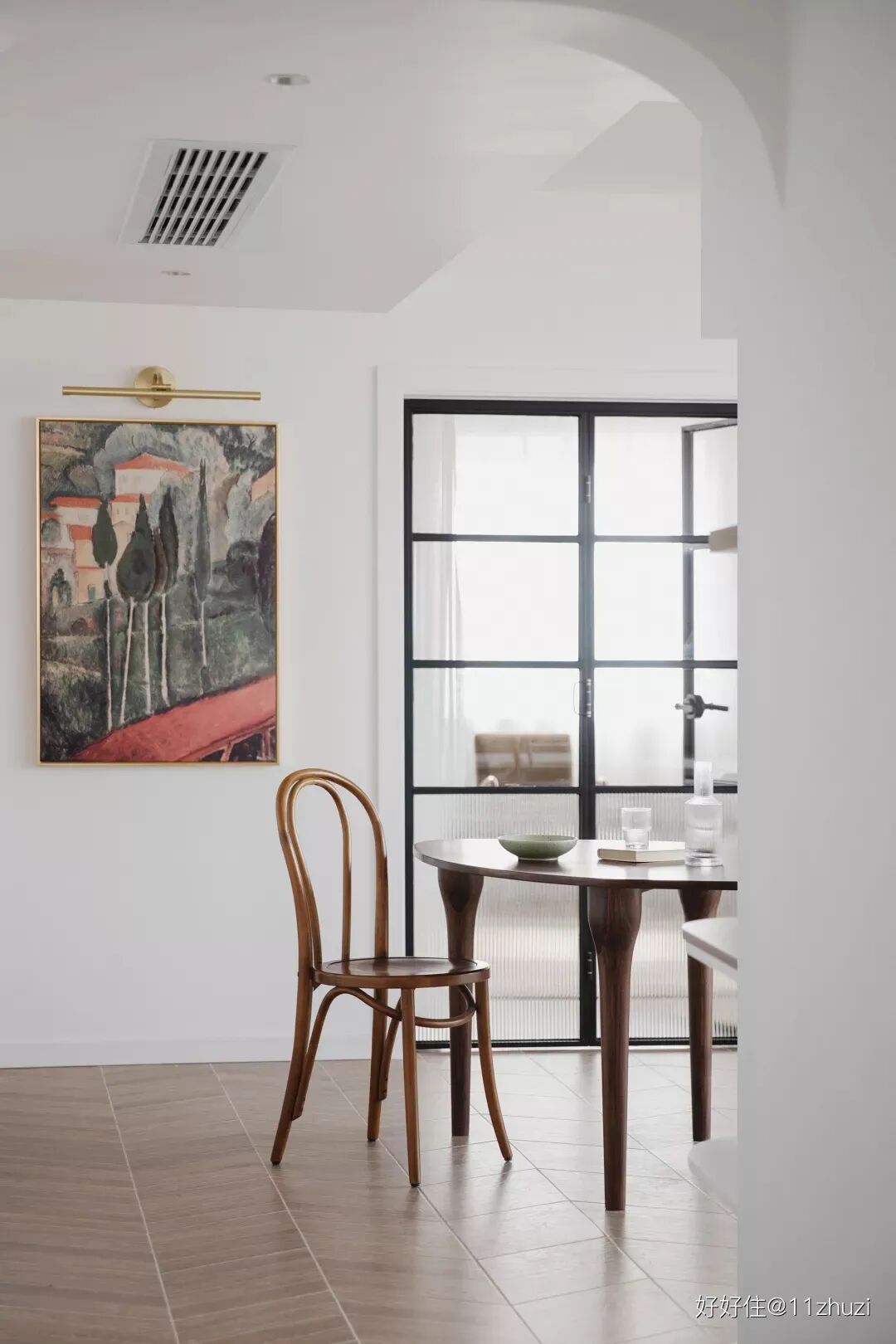 更别提双开门+人字拼木地板的使用,仔细打量她家的单品设置,足以体现出这个家庭的优渥与审美。
