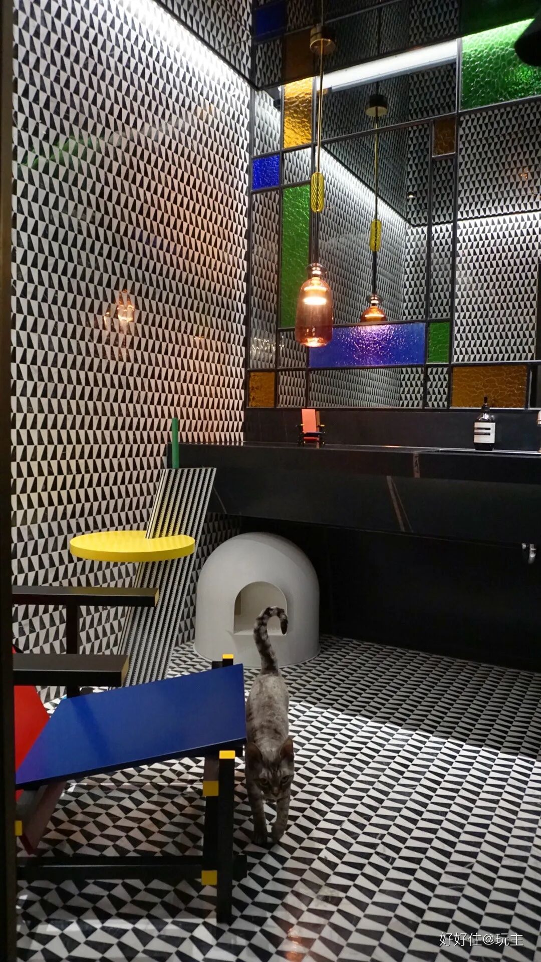 这样的色彩搭配,不免让我想到住友@玩主 的家——以蒙特利安为灵感来源,完全反常规,将家住出了跳脱又个性的风格。