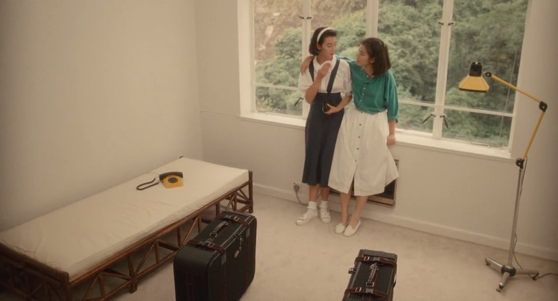开场,就是潮湿的暗绿色调。张国荣手拿一个 PAN AM 泛美航空旅行袋,以玩世不恭的形象,出现在狭长的走廊,第一次与张曼玉相遇。