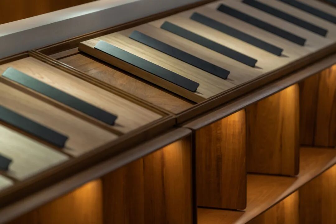 初始接触“本木”通过入口的柜体陈列,可以初步了解“本木”产品调性和工艺,经过适宜的“脑补”过程,使用“本木”产品的设计师和业主就能得到是否符合心目中理想木作的概念性判断,为进一步决策打下基础。