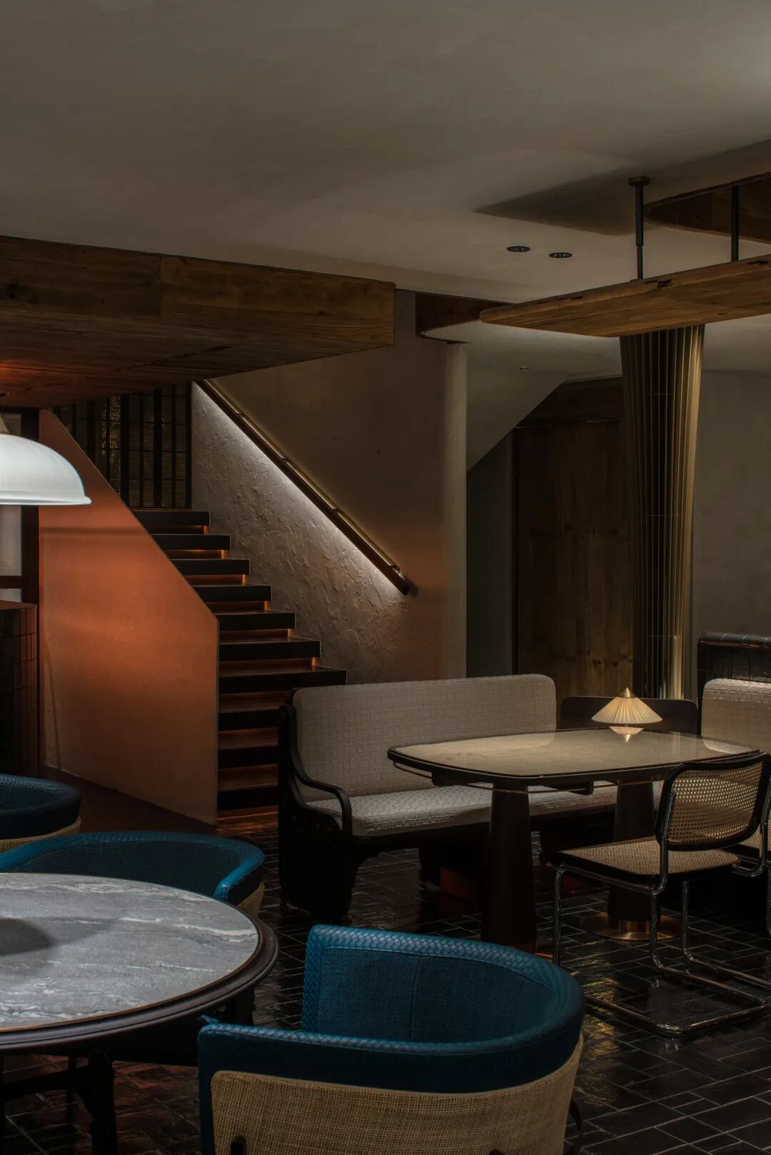 最引人瞩目的是在区域划分上,设计师让不同属性的空间交汇在顶部,而不是常规的地面抬升。设计师在这里让灯光的区域突变,线条灵动而简约而优雅,工艺细腻。