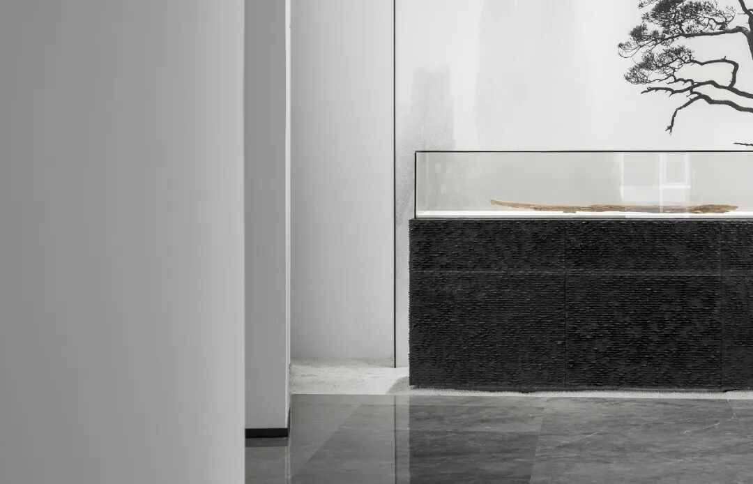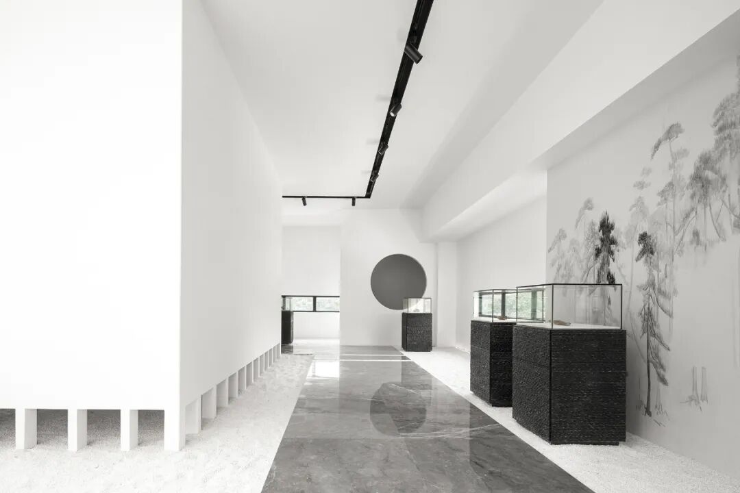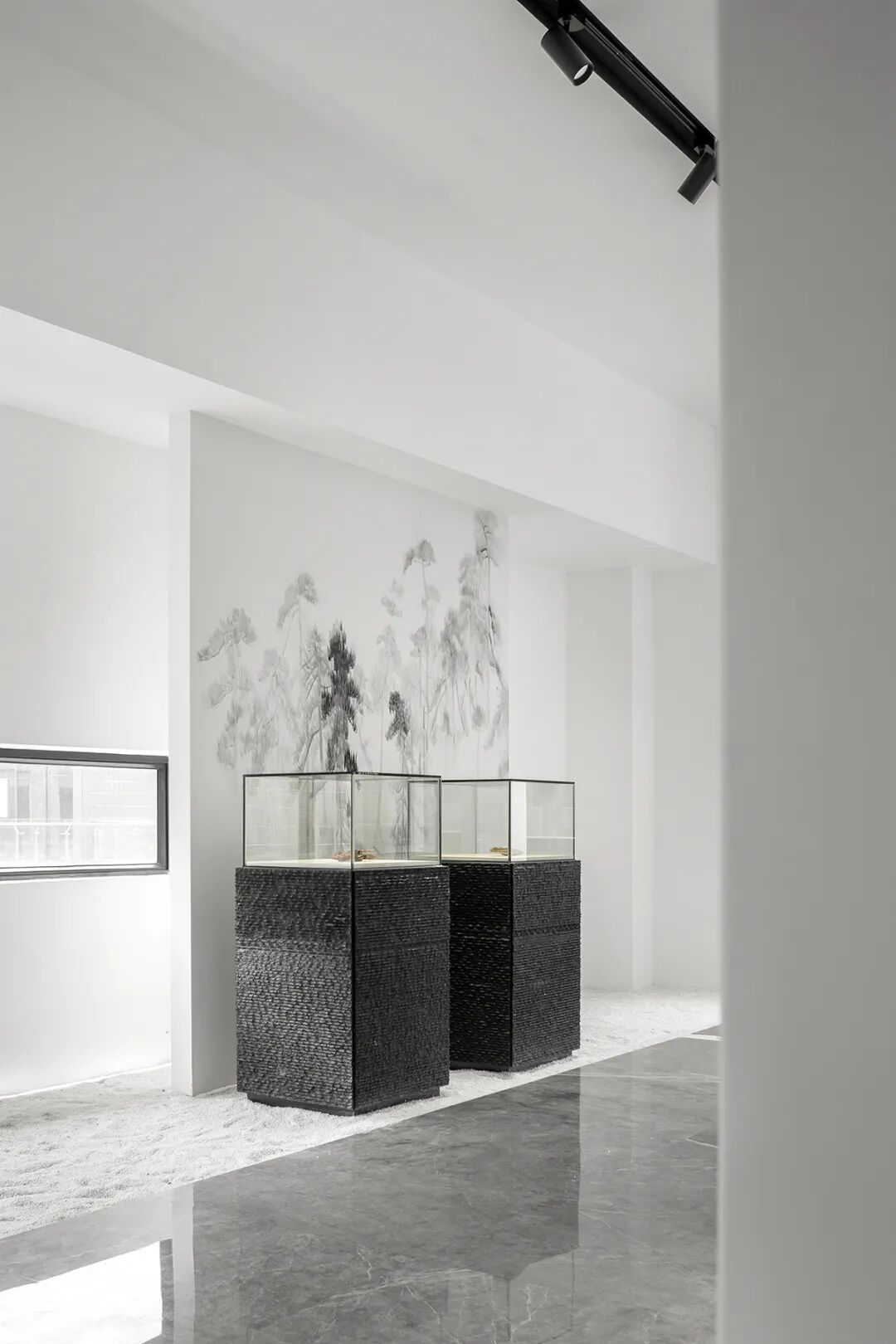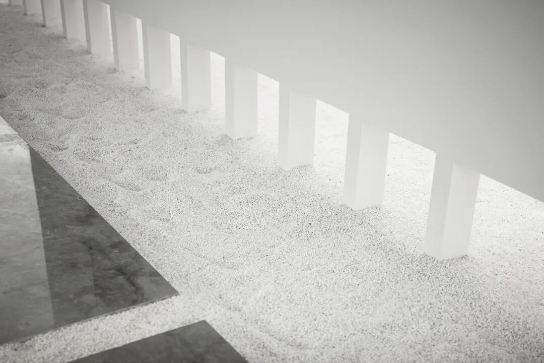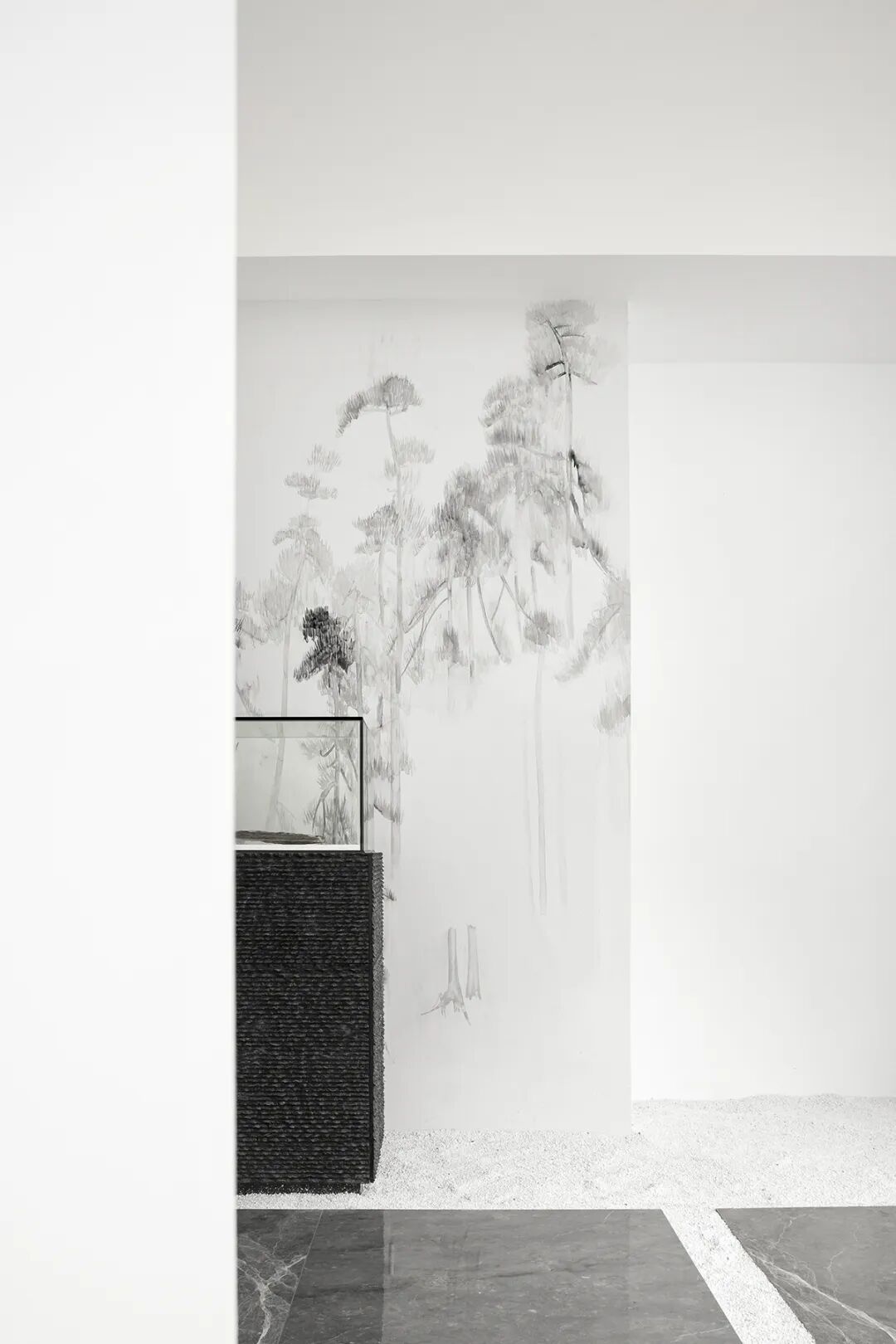 白,素雅之白,纯净之白,成为空间主色,恬淡中道尽千年往事,凝神里不掩人文意涵。既是茫茫铺展,又如脚底颗粒细沙,以独特的视觉和触觉,为观者营造沉静而缥缈的观赏氛围。