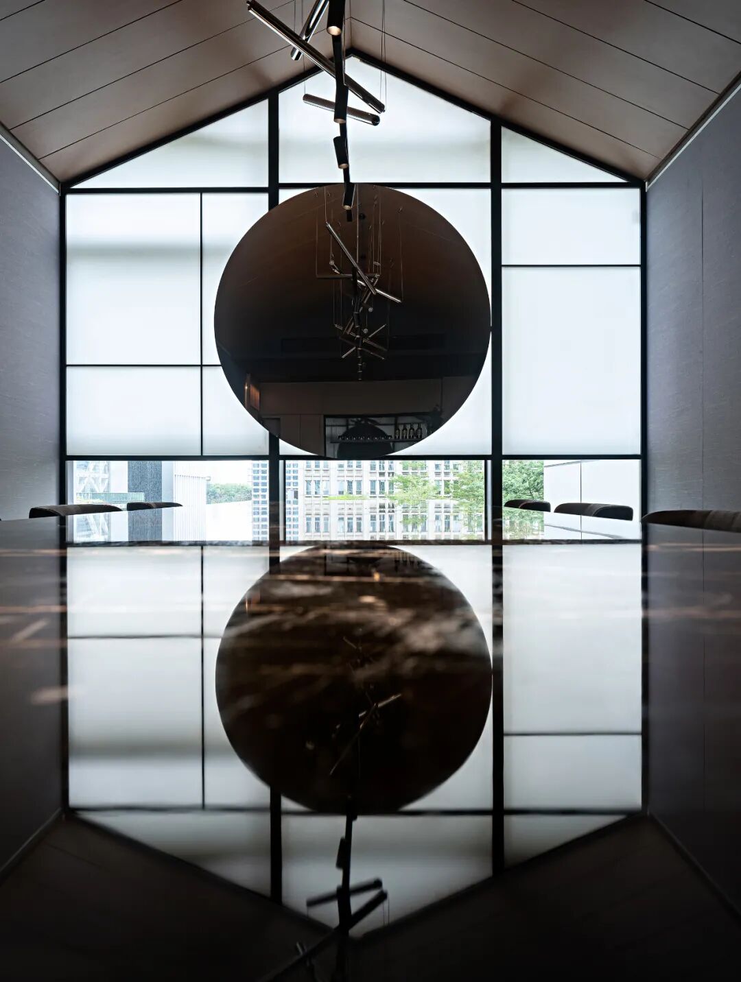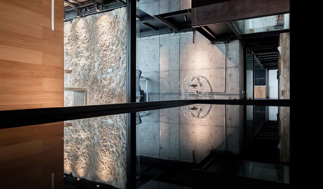 悬浮的方盒子服务台呈现出一种极简而又富有雕塑的气质。
