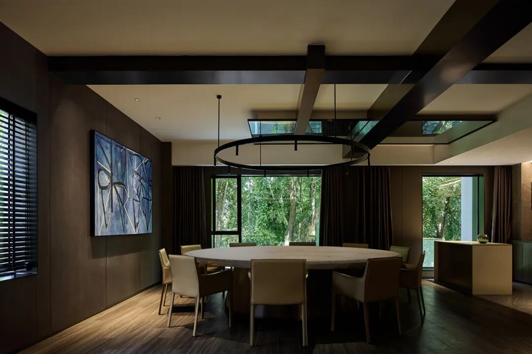 健身房的设计简约到只能看得见那窗外的绿树成荫,犹如置身于自然之中。