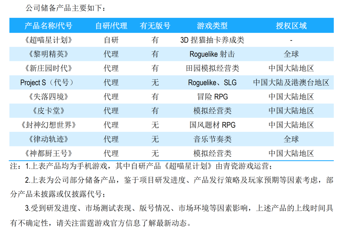 产品储备方面,吉比特目前拥有1款自研产品和8款代理产品,其中5款拥有版号,具体如下: