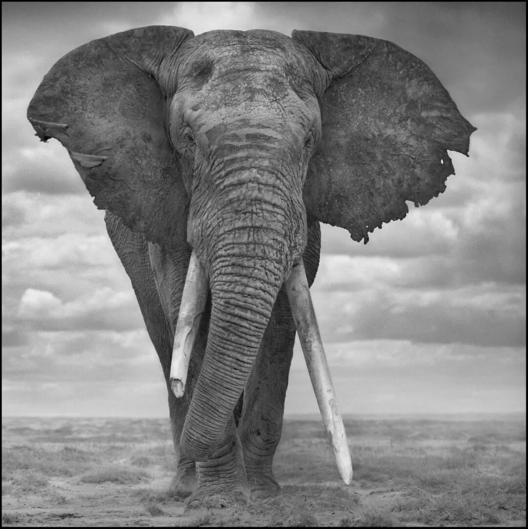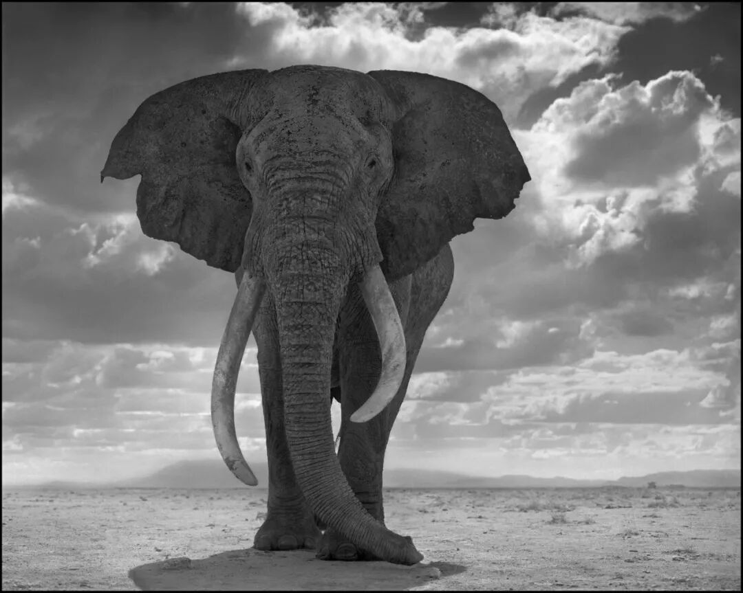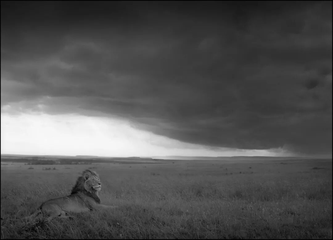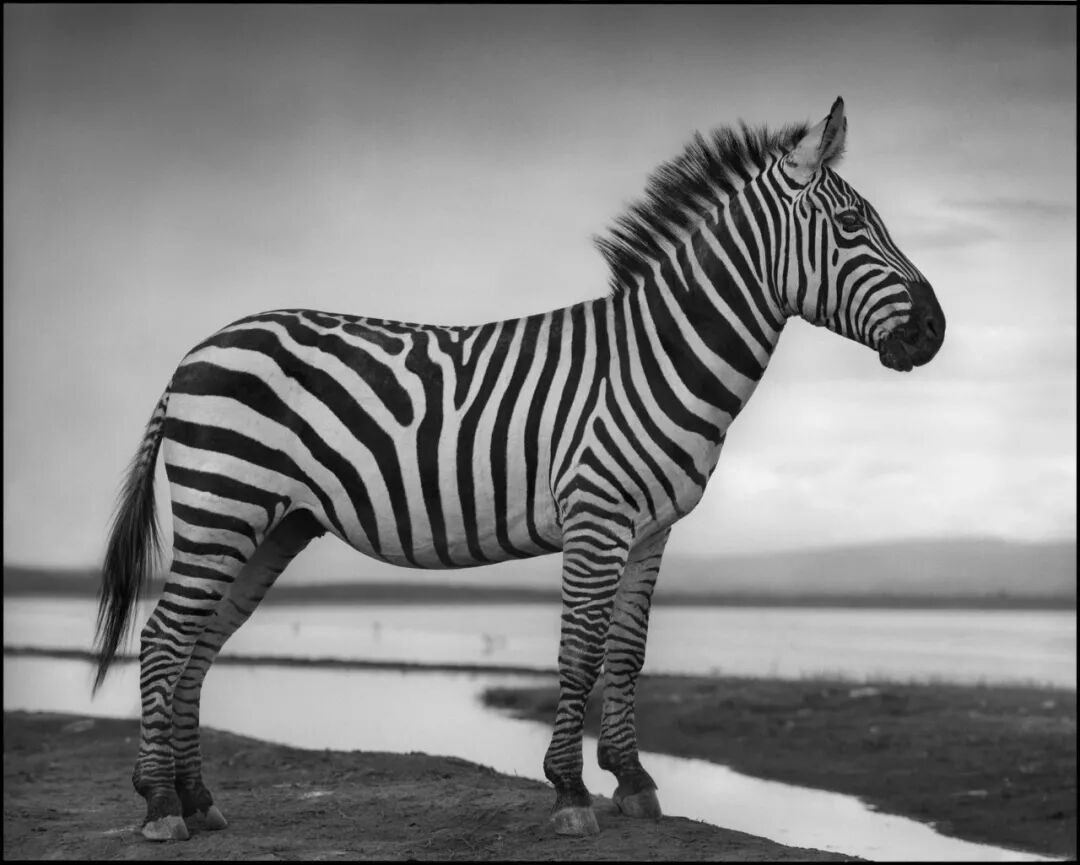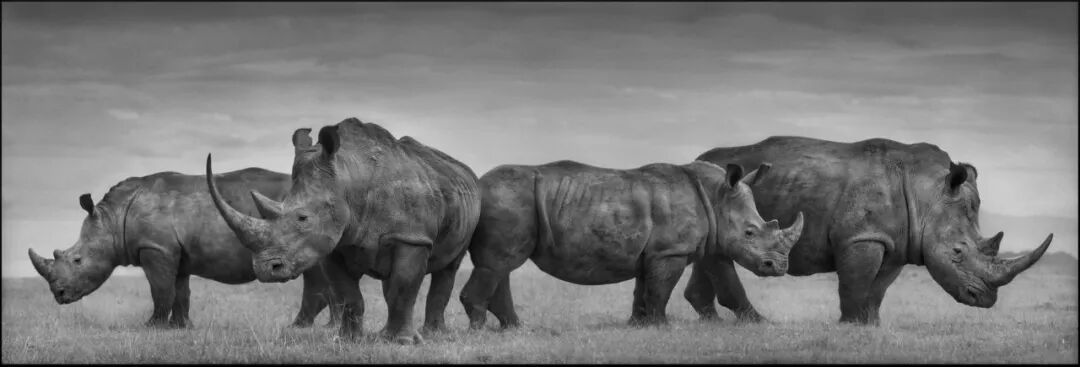早些年在东非拍摄的未发布的动物肖像,被打印成真人大小,并粘在大画板上。