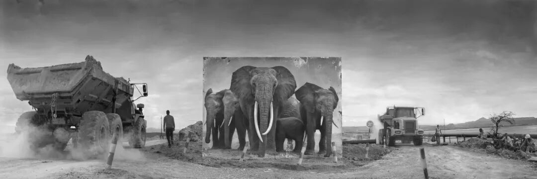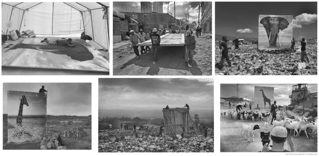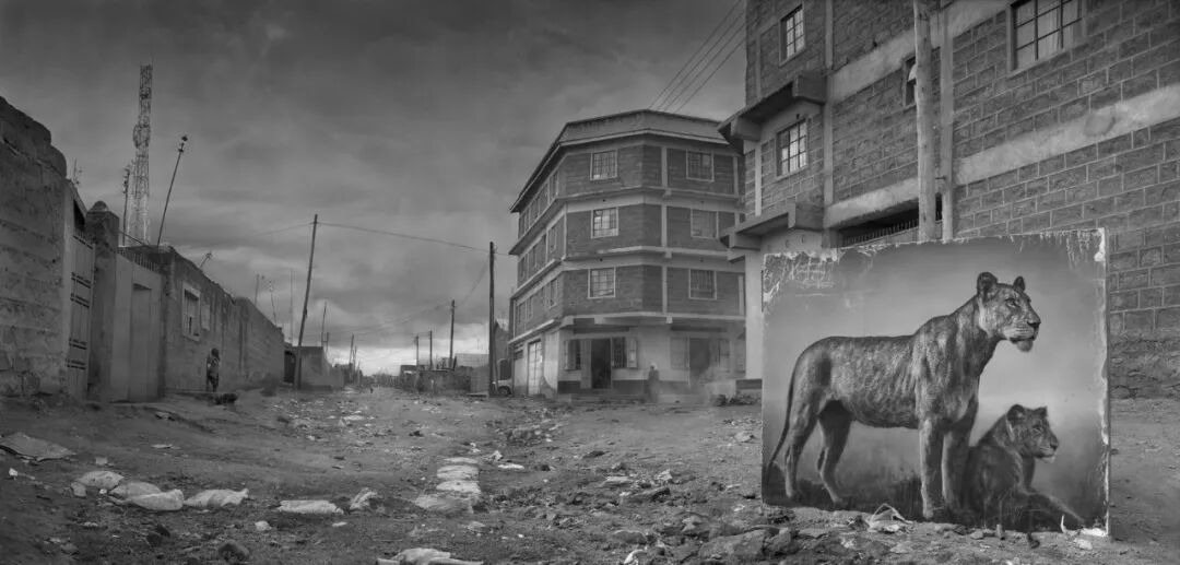 然后,这些画板被放置在城市爆炸式发展的世界中,在这些动物曾经漫游的地方,由于人类的影响,它们不能够再漫游了。