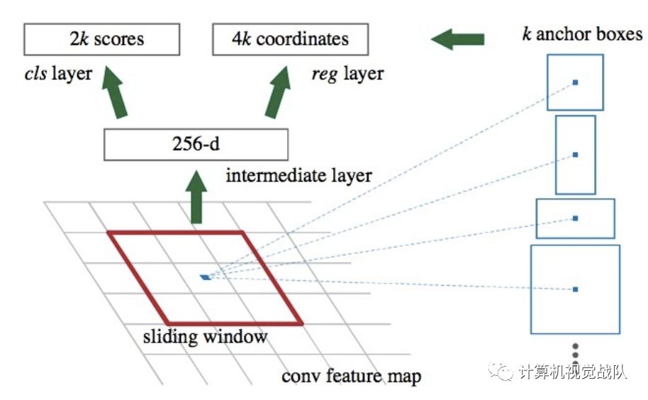 综上,通过滑窗和Anchor机制就可以找到固定比例、一定大小的proposals,这样RPN就可以完美替代低效的Selective Search去产生proposals。