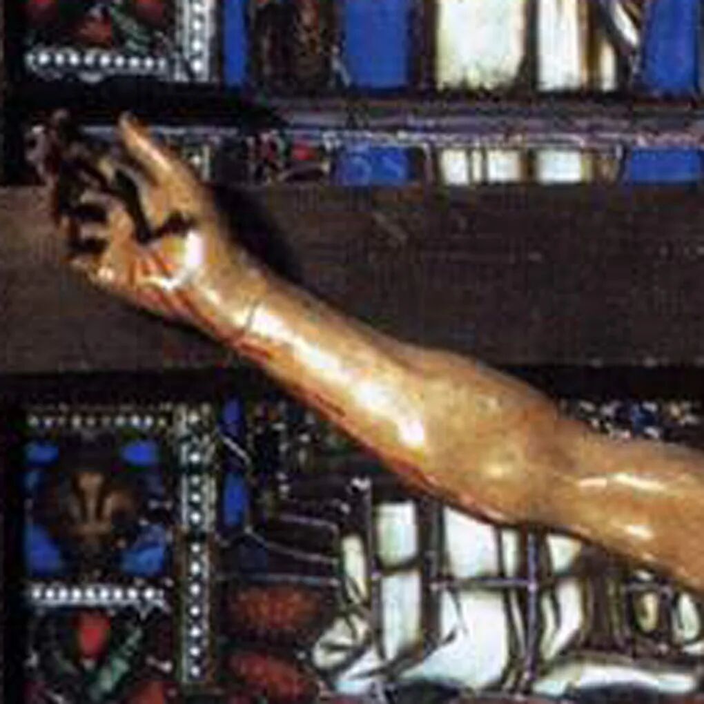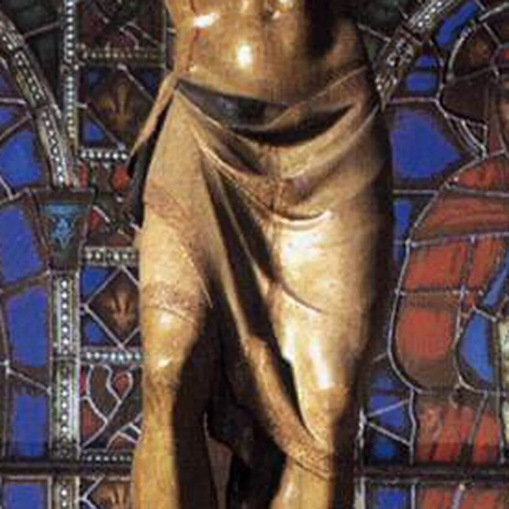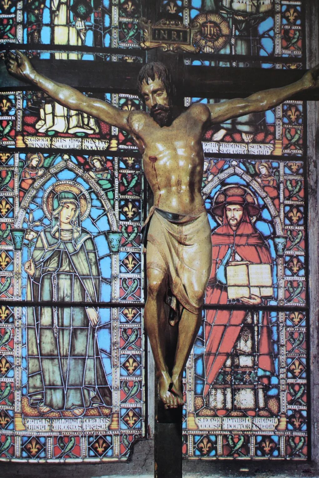 这尊《基督受难》表现了基督承受了极大的痛苦的表情和姿态。