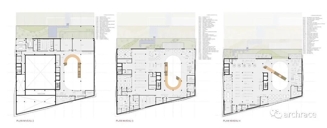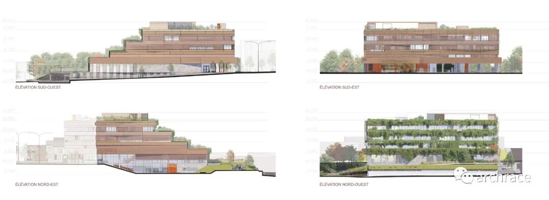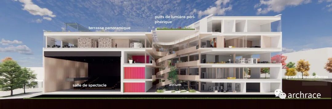 “建筑创造了随文化而变化的文化景观,通过不同楼层的平面变化改变了场地。这些连续的层层退台丰富了地貌,展现了一片进阶且不断发展的场地,正是这些遗产塑造了社区文化中心(Espace Rivière)项目的外观。”——获奖作品的文字描述摘录