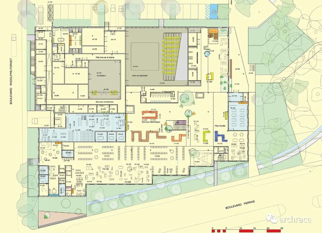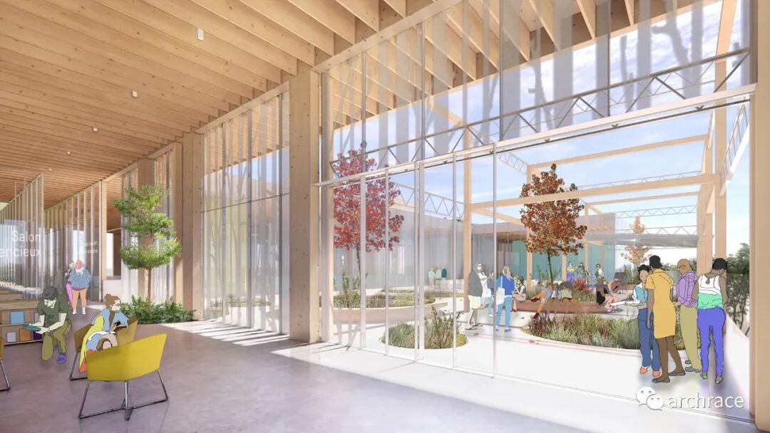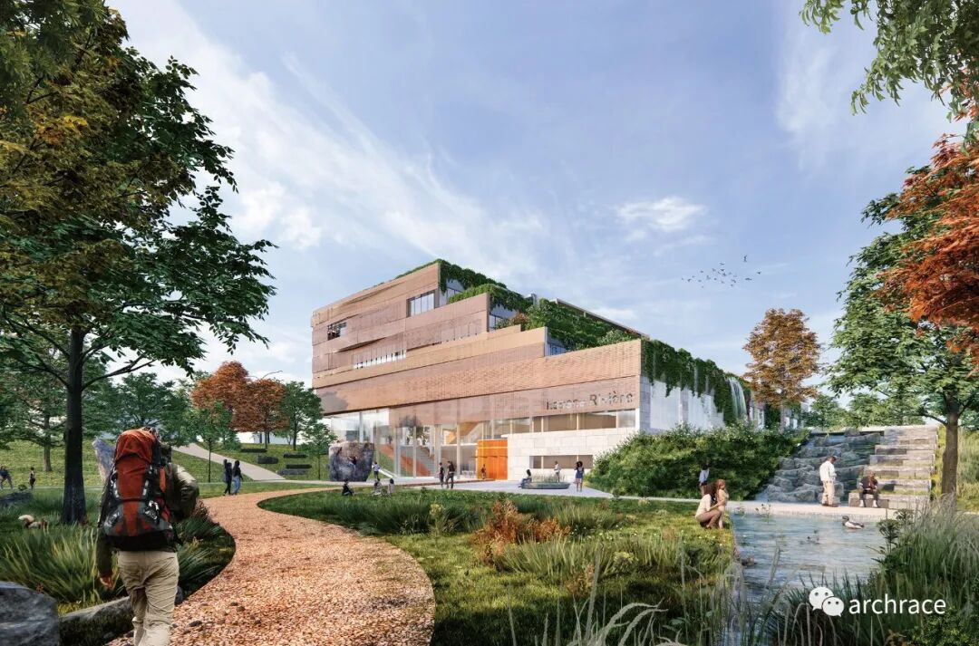 竞赛背景情况 去年3月,加拿大蒙特利尔市设计办公室发起了 Rivière-des-Prairies 社区文化中心(Espace Rivière) 的设计竞赛,竞赛目的是在位于 Rivière-des-Prairies 街区的 Perras 大街和 Rodolphe-Forget 大道的拐角处的现有图书馆旧址上,新建或扩建一个总建筑面积约 10,060 平方米的社区文化中心建筑。竞赛允许参赛团队提交他们认为最合适的潜在建筑解决方案——保留、重新开发和扩建,或解构现有建筑并建造新建筑,前提是满足项目的需要和业主的要求。参赛者的考虑因素必须包括但不限于与场地的建筑和开发潜力、项目的环境价值和所需投资相关的利弊。 这场多学科建筑竞赛提供了一个机会,让 Rivière-des-Prairies 社区拥有一座具有原创设计的独特建筑,这将提升该地区的积极形象并使其脱颖而出,同时履行该城市在促进卓越设计和加强蒙特利尔作为联合国教科文组织设计之都的地位。 实施Rivière-des-Prairies 社区文化中心(Espace Rivière)项目的作用包括: · 为蒙特利尔岛东部的居民提供优质的设施和服务,以弥补大型城市设施距离较远,以及文化娱乐基础设施的显著不足; · 解决长期以来市民表达的建立新的 Rivière-des-Prairies 文化馆的需求,因为这是原始网络的最后一个剩余部分,没有专门的空间为公众提供服务; · 解决现有 Rivière-des-Prairies 图书馆的缺点和陈旧问题,使其满足新时代的标准; · 解决 Rivière-des-Prairies 社区中心面临的挑战,该中心目前租赁的办公空间十分有限且无法满足办公需求; · 将蒙特利尔市 Rivière-des-Prairies 社区办公室并入新大楼。 该项目还计划促进服务功能的混合、团队之间的协同作用以及一个地点潜在用途的多样性。各种服务功能将按照一个非艺术化的概念共存,文化中心将分为三个部门和六个中心。 社区文化中心将与 René-Masson 的城市振兴同时建设,在整个项目中,该机构将扮演塑造社区身份的角色,并与其周边的林地等自然和景观环境协调一致的对话。 去年年底,竞赛结果公布,加拿大本土设计公司 Affleck de la Riva 与 Coarchitecture, LGT inc. ,François Courville 等公司合作赢得了该竞赛。