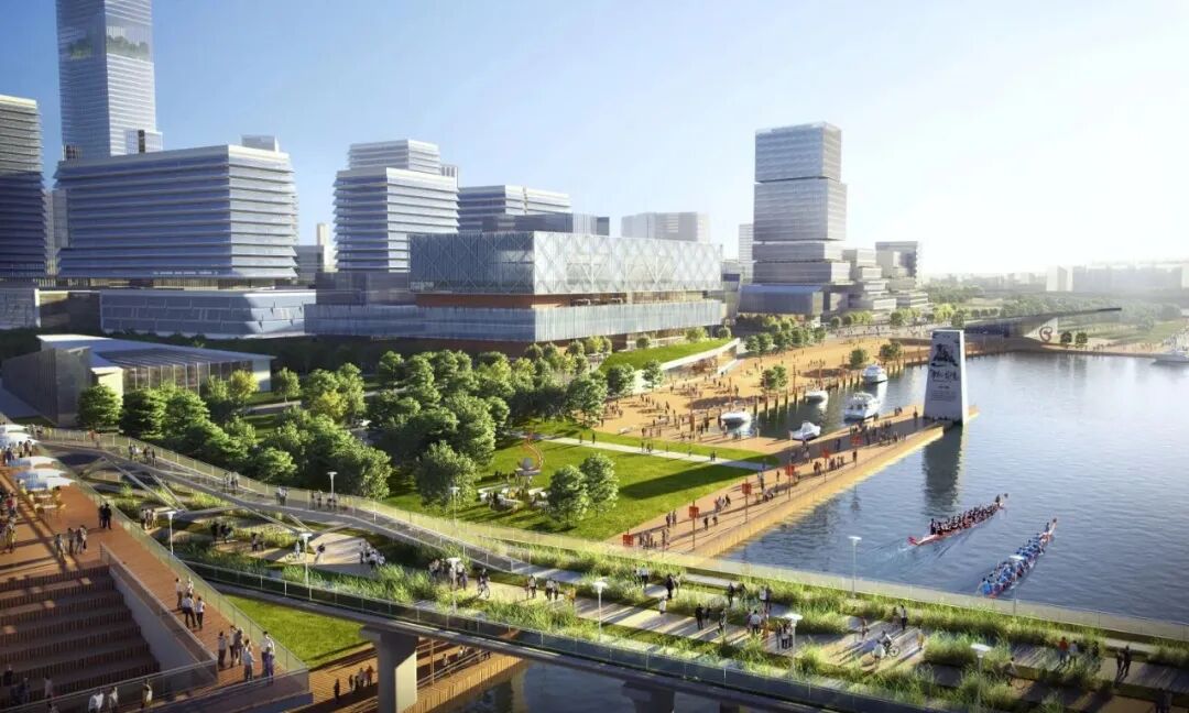 AECOM提出 “嘉兴枢轴,无界水乡” 的总体发展愿景,强调传承红船文化精神、融合水乡生活印记。在 “以站兴城,以水营城” 理念下,总体规划方案(约16.2平方公里)从 “区域与城、水与城、站与城” 三方面的融合入手,采用 “水•马赛克”的设计概念,组织构建城市肌理和开放空间,让水系空间具有生活、生产、生态、旅游、交通等多重功能属性,成为承载人文、延续发展的重要脉络,以现代手法重新演绎嘉兴的水乡文化和人文特质。同时,“融水入站”理念下的规划、建筑和景观一体化设计,以及充满江南韵味的站房设计概念,塑造出一座充满江南韵味的高铁枢纽综合体,树立别具一格的站城融合新典范。