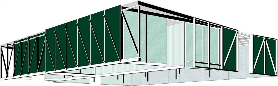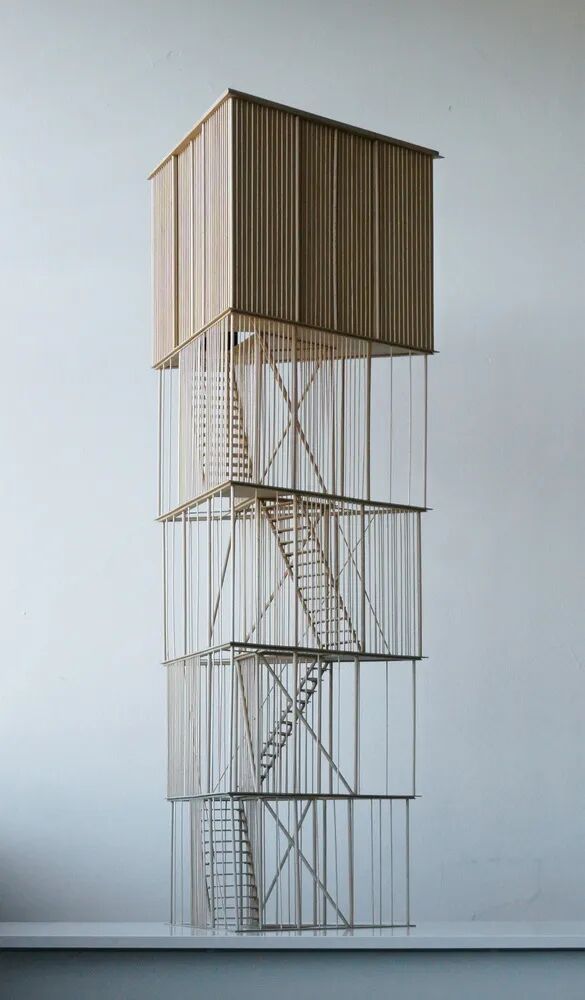 再加上下部的“虚”与顶部的“实”所产生的对比,观鸟台传达出了强烈的上重下轻的感觉,整体上带来一种结构的单薄与脆弱感。