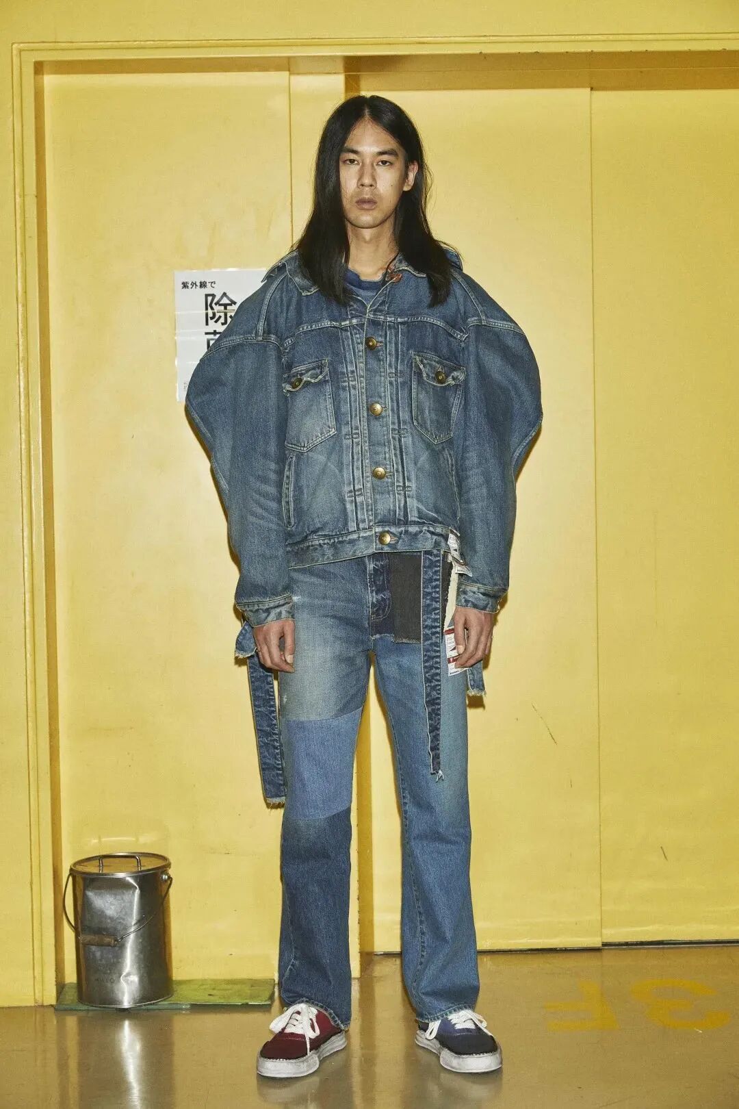 Mihara Yasuhiro在保持衣物本身质感的同时,以一种轻盈和时尚的方式融入了一些视网膜刺激因素。简洁明了的裁剪和线条用力表达着毫不费力的日式复古时尚。
