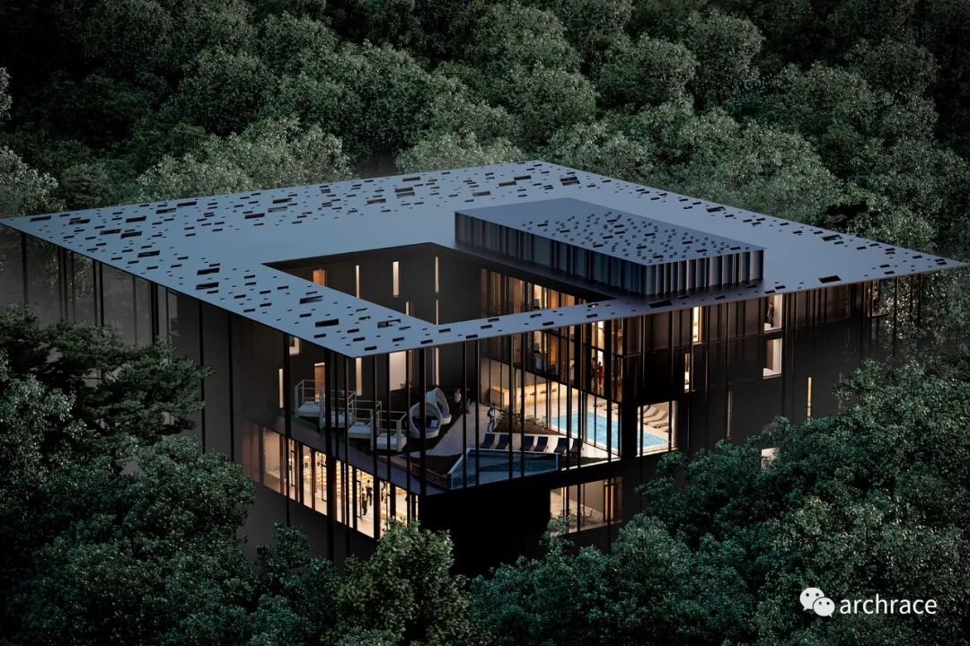 匈牙利本土建筑事务所 4N Architects 赢得第一名,关于该方案评委评价到:“就其建筑方法而言,这是一个非常令人兴奋的计划,其氛围与周围环境保持了绝对的和谐。该项目强调了场地内森林这一要素的价值,以及在森林中表现和适应都有着出色的认识。细长的柱子仿佛是森林树干的延续。因此,这座建筑成为其周围环境的一部分,这是非常聪明的设计。作为一座结构精良的建筑,其空间得到了合理利用,各种特质的空间被结合在一起——完全开放的空间、有盖空间、封闭空间、社区空间等。内部布局严谨,线条感强,联系合理。这是最吸引人的参赛作品,尤其是建筑体现的光影效果使其融入了森林环境,成为环境的一部分。”