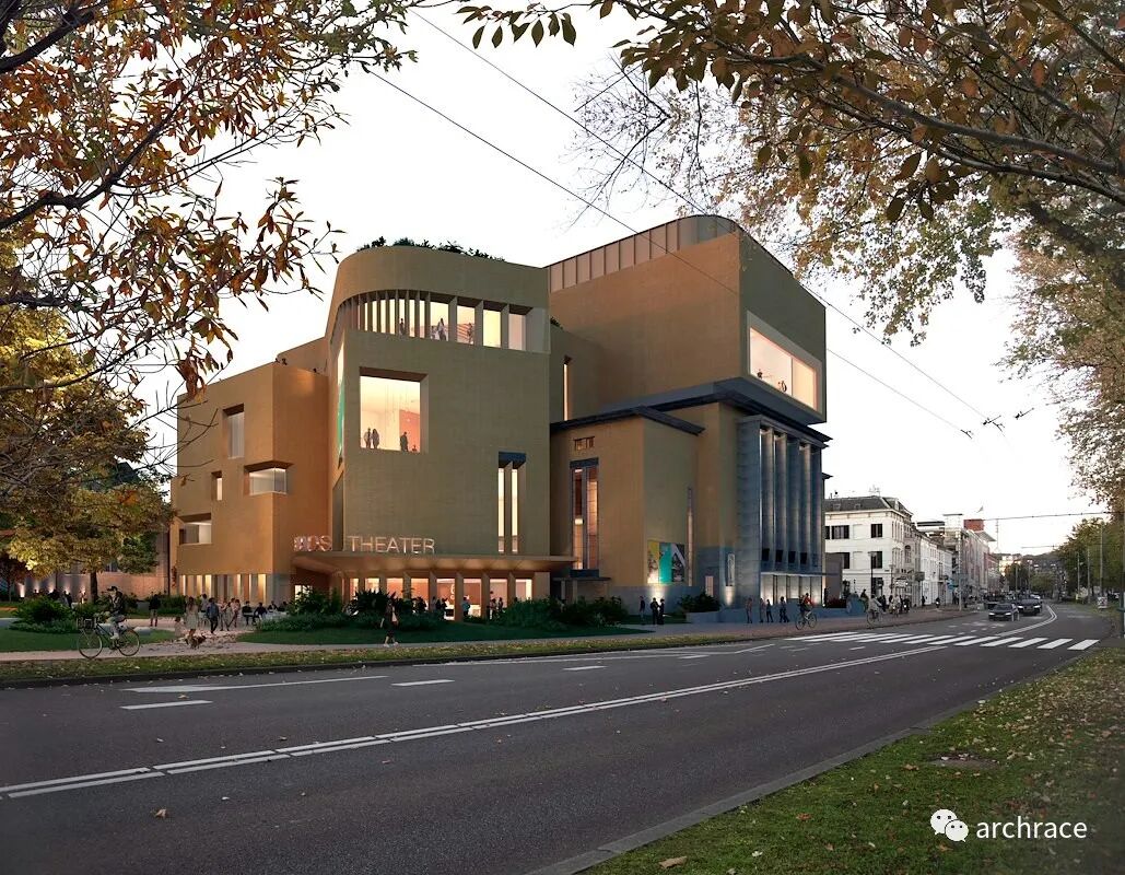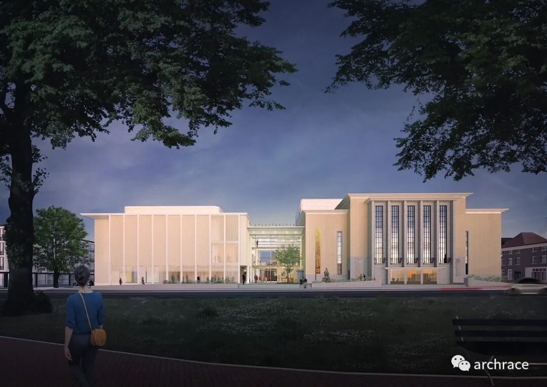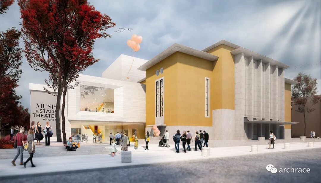 竞赛背景情况 2022年12月底,荷兰阿纳姆市政府宣布由 Braaksma & Roos Architectenbureau、Civic Architects 和 Arup 组成的团队从5个候选团队中脱颖而出,赢得了阿纳姆市政剧院翻新和扩建工程的设计竞赛,他们的设计方案被评委们称作是“一个经过深思熟虑且完整的故事”。 2022年12月初,入围阿纳姆市政剧院改扩建设计竞赛的5个设计团队向公众展示了他们对即将翻新的阿纳姆城市剧院的设计概念。其中 Braaksma & Roos 团队在描述其设计方案——“城市与运河之间的绿洲”时,这样说到:“改善城市剧院与观众、运营商、城市和环境之间的联系是该方案的主要目标。剧院大楼周围将会设计一个无障碍花园,剧院的后勤物流将通过一个来自 Singel 的中央通道进行处理。扩建部分采用了紧凑而朴素的设计,能够使人们的注意力被原剧院建筑的装饰艺术风格所吸引,原有的剧院建筑将作为改造之后的市政剧院的主入口大厅进行修复。” “新建筑和历史悠久的主入口大厅形成了一个充满活力的公共室内空间,人们可以在这里组织新的文化活动。此外,剧院的主大厅的座位舒适度和观演视线将得到彻底解决,翻新过程中所释放的建筑材料可用于实现新的圆形小观众厅。在 Singelpark 一侧,一扇大窗户向城市展示了剧院内发生的事情,大楼将有一个“Waal Church 门厅”,建筑的另一侧还设有第二个主入口。因此,市政剧院的落成会将 Koningsplein 地区转变为城市绿洲。” 评委们除了对获胜方案背后的故事高度认可外,还认为该方案在物流组织方面非常巧妙,后勤路线不与公众路线交叉,旧剧院建筑作为主入口大厅也将恢复昔日的辉煌。由于整个方案中市政剧院占地面积较小,因此四周能够用于绿化的机会较多。评委们认为“这为市中心提供了一条通往公园的绿色走廊”。 据阿纳姆市政府称,该提案在可持续性和自然包容性方面也颇受好评,还提到该方案“采用了包括用于装卸的智能设计,在室内也可直接从与运河的物流输送连接”。 评委会由 Musis & Stadstheater、阿纳姆市政府和外部专家的代表组成。获胜结果公布后,设计团队将把设计概念进一步发展成草案设计,预计在 2023 年春季完成,之后将进行初步设计和最终设计工作。 目前的市政剧院将于2023年秋季关闭。在这种情况下,将首先进行一些测试工作、可能的修复和部分拆除工作,之后才开始正式的施工计划。据阿纳姆市政府报道,翻新后的剧院将于2027年再次向公众开放。与此同时,市政剧院正在寻找继续组织演出的替代方案。