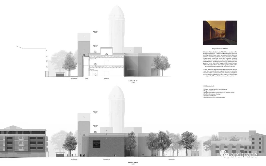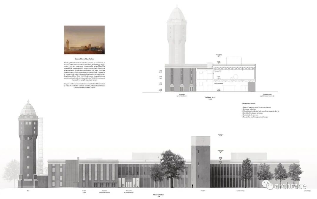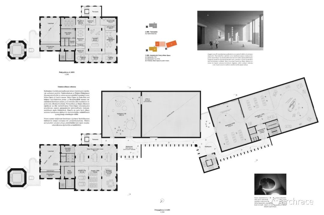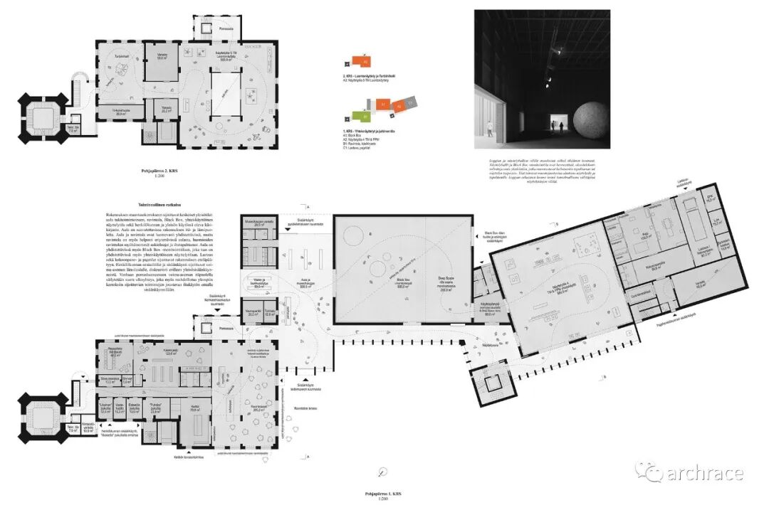 竞赛背景情况 去年8月,芬兰奥卢市为该市的博物馆和科学中心(Oulun museo- ja tiedekeskuksen)的设计组织了一场综合建筑竞赛。竞赛任务包括了需要翻新的主楼和一个较新的科学剧院部分,后者将被一个更大的新建建筑取代。未来展览和活动中心的目标是每年可以接待 200,000 名游客。 新建筑将容纳博物馆和科学中心组织的大部分工作人员,以及 Tietomaa 和 North Ostrobothnia 博物馆,新项目建设计划在 2024-2026 年完成建设,预计将于 2026 年奥卢文化之都年伊始对外开放。据城市经理 Ari Alatossava 介绍,奥卢市将投资约 3000 万欧元用于博物馆和科学中心的建筑群,该项目也是是奥卢历史上最大的文化投资之一。