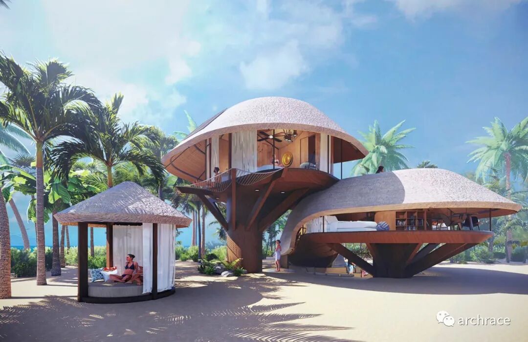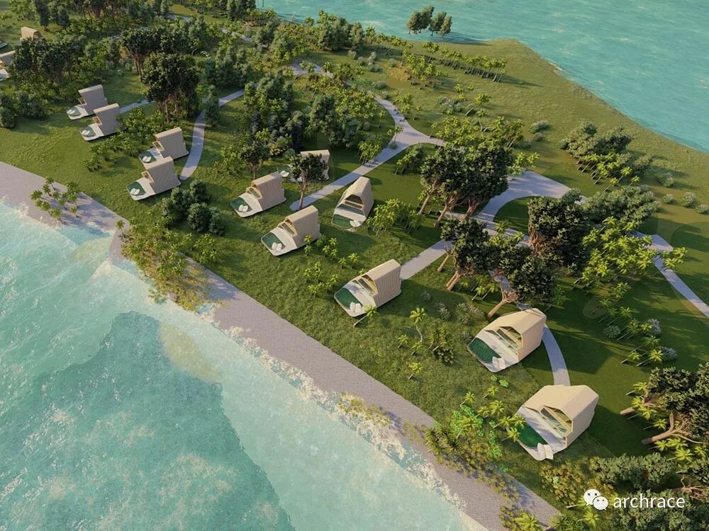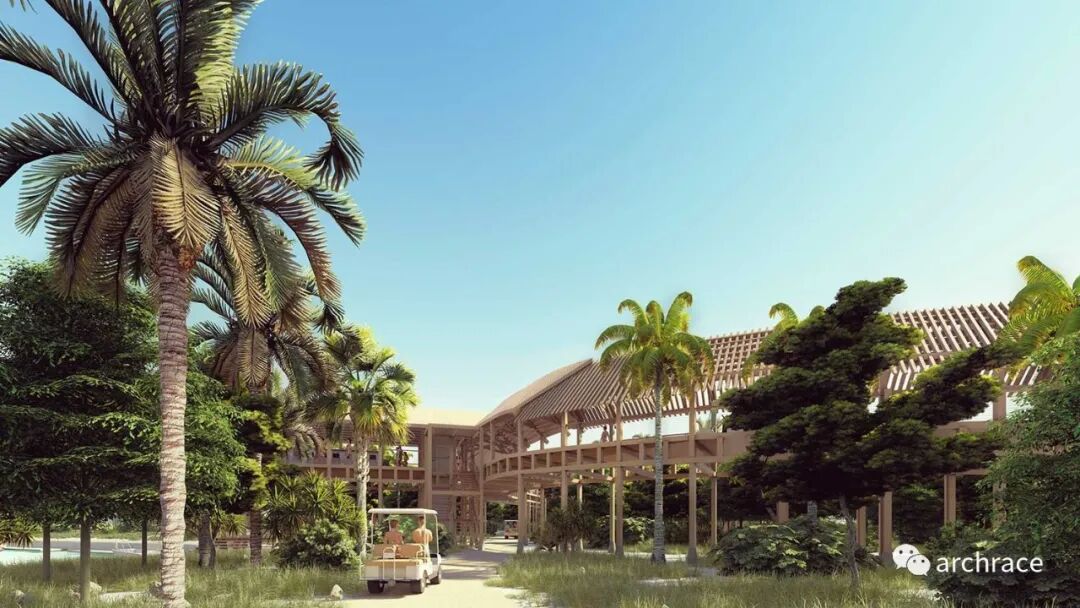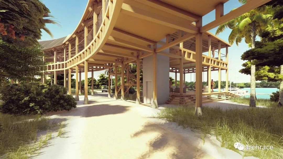 竞赛背景情况 英国皇家建筑师学会(RIBA)在去年9月为巴哈马群岛的一个私人岛屿上发起了一场新的豪华度假村概念设计竞赛。岛屿的所有者希望创建一个高度可持续的目的地,吸引来自世界各地的旅行团、社区和居民的游艇前来停靠,同时保护岛屿周围的自然美景。豪华度假村项目围绕岛上三个关键区域展开:海滩俱乐部、码头和设备齐全的可预订酒店。 去年年底,竞赛结果公布,位于加勒比特克斯和凯科斯群岛的建筑事务所 James Hamilton Architects 被赢得了竞赛的总冠军和海滩俱乐部概念设计第一名。他们提交的名为“项链”的设计方案,以一种全新的方式思考旅游和接待功能。整个项目从地面升起,提供了立体的交通和便利设施,而不是仅仅专注于建筑。架空的人行廊道创造了许多机会,同时也解决了竞赛任务提出的问题。获胜方案最主要的目的是创建一个平台,在该平台上,开发项目可以灵活扩展,对岛内和周边海洋环境的影响有限,同时可以防止海平面上升或潮汐的影响,这种方式还有一个独特优点是升高的平台提供了360度海景的绝佳视角。 James Hamilton Architects 在谈到他们的获胜提案时表示:“我们很高兴获得这次总冠军。我们的‘项链’方案是一个整体抬升的木结构,旨在重新定义这座岛屿,同时为整个物业提供再生支持设施。” 另外六个设计团队因其创造性和独特的设计理念而获奖,获奖情况如下: Jestico + Whiles + Associates(英国,伦敦)——海滩俱乐部概念设计入围团队,码头概念设计获胜团队; PANOPTYC(埃及,开罗)——码头概念设计入围团队; Liyang Wang(美国,纽约)——酒店概念设计获胜团队; Sabina Blasiotti(英国,伦敦)——酒店概念设计入围团队; Studio Line Between(美国,佛罗里达)——酒店概念设计入围团队; Mola Mucho(印度尼西亚)——酒店概念设计入围团队。