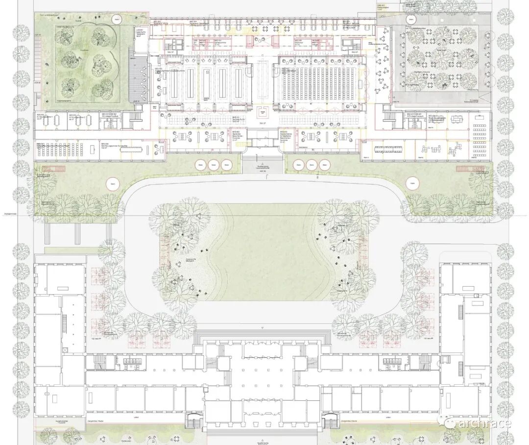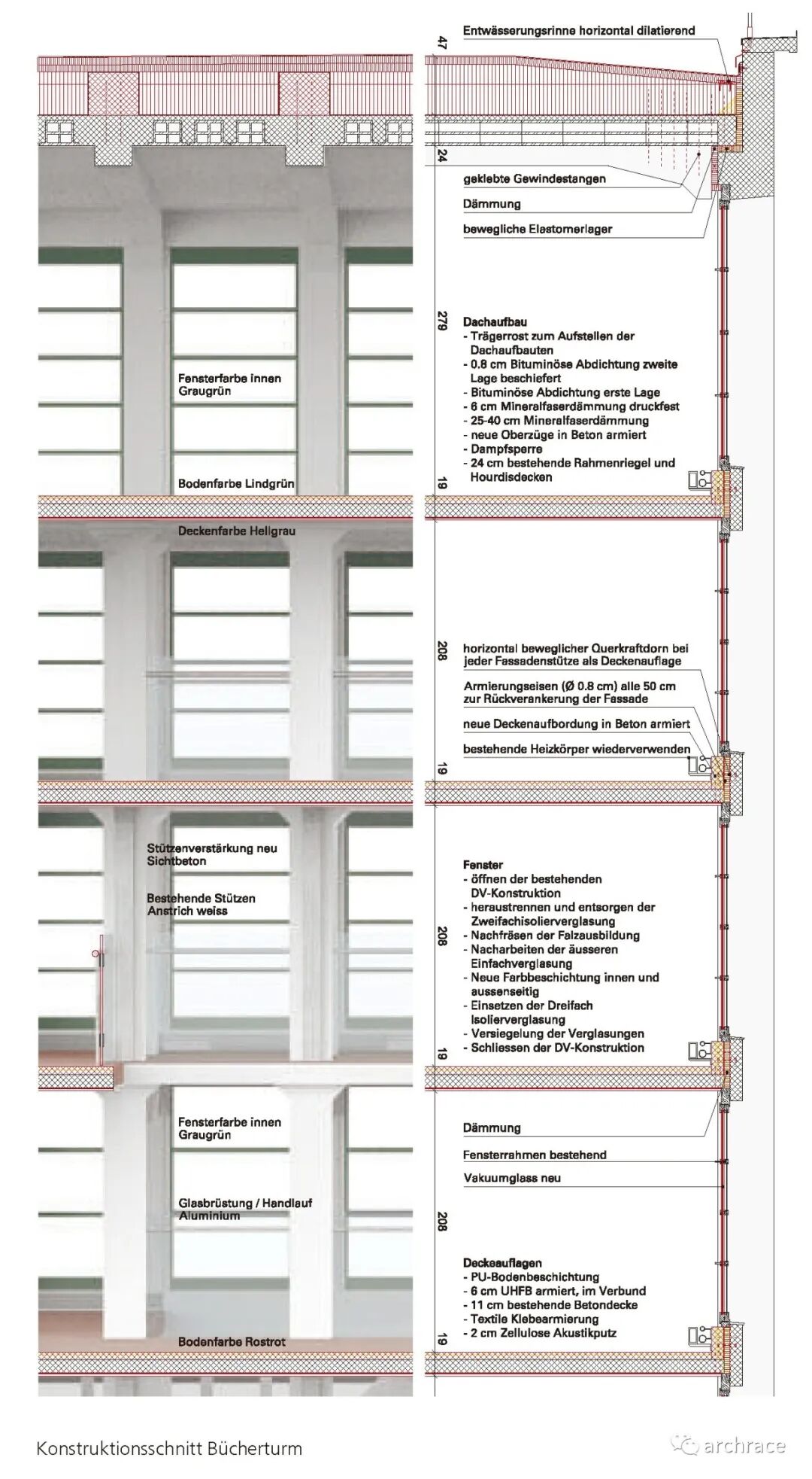 Christ & Gantenbein 团队的获胜提案以令人信服的方式成功地保持了国家图书馆现有建筑群的高空间质量。方案的设计原则是接受现有的历史建筑及其庞大而相对僵化的空间格局,通过空间改造和设备升级创造了必要的条件,来持续提供现代和有吸引力的图书馆服务。
