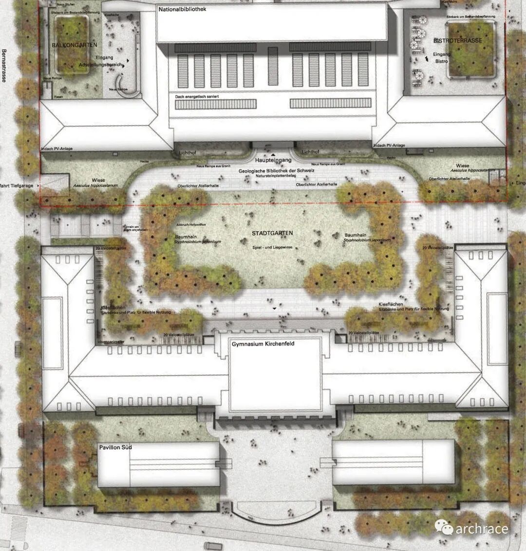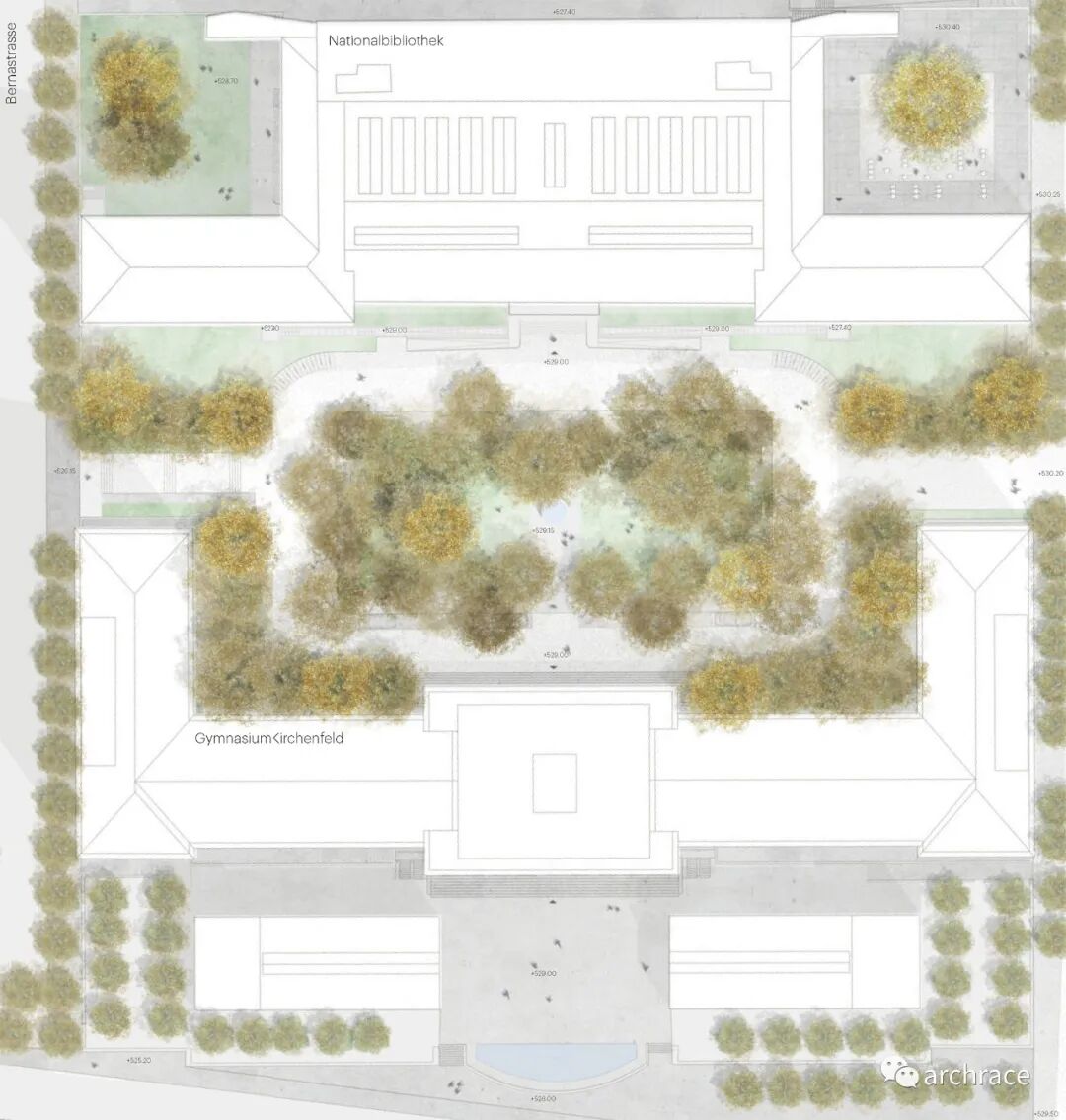 2022年春季,共有32个设计团队提交了参赛申请。由瑞士联邦政府、伯尔尼州和伯尔尼市的代表、邻里协会和外部专家组成的评审委员会从中选择了6个入围团队。竞赛要求参赛团队制定具体的项目建议书来表明他们希望如何确保对现有建筑群的核心进行改造和扩建。另一方面,参赛团队必须考虑未来国家图书馆使用概念的各个新方面。因此,计划中的整体翻新的重点也在于国家图书馆重新布局。