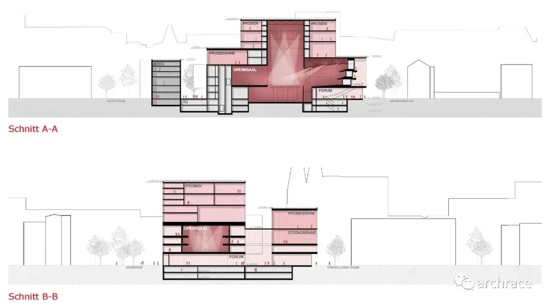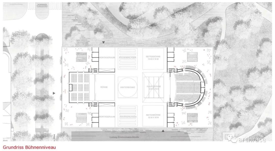 其中 Heinrich-Heine-Allee 大街16A 地块是该市旧歌剧院的所在地,紧邻 Hofgarten 的公园,与杜塞尔多夫美术馆隔街相对。早在2020年,Snøhetta 曾受 CENTRUM GROUP 公司的委托,为杜塞尔多夫市旧歌剧院地块设计了一个新的歌剧院和文化中心替代方案,如今看来当初的计划可能已经被放弃。