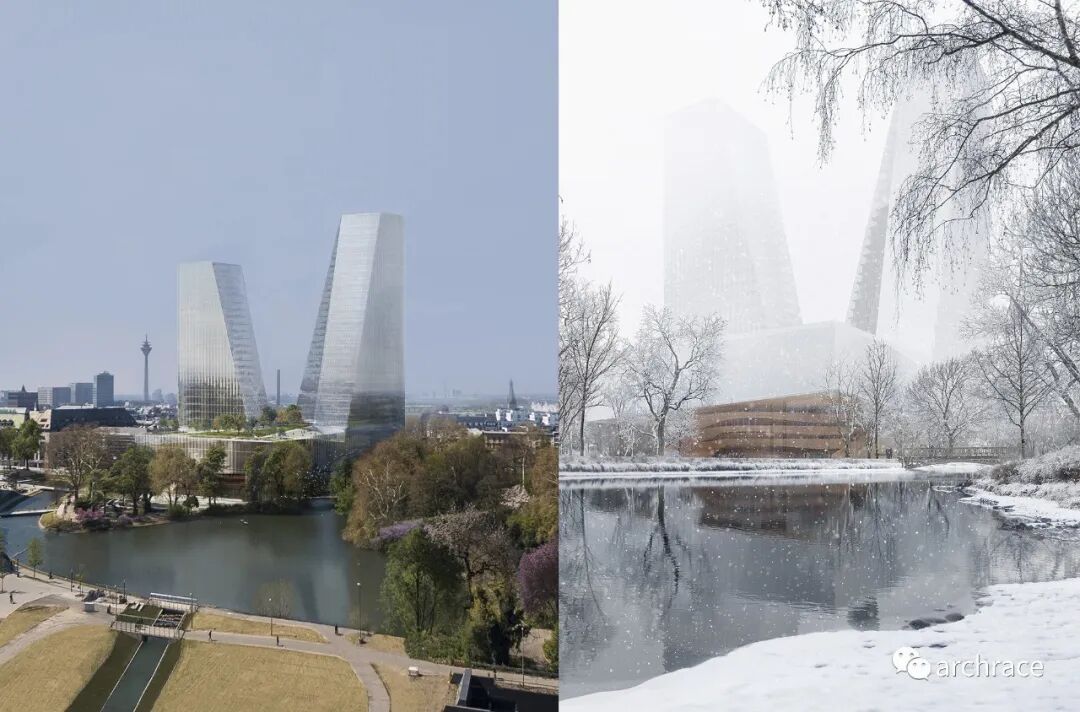 去年9月,德国杜塞尔多夫市议会发起了一项旨在确定该市莱茵河畔未来新德意志歌剧院(Deutsche Oper am Rhein - Opernhaus der Zukunft in Düsseldorf)选址的概念设计竞赛。在竞赛发起之前,杜塞尔多夫通过第一阶段的公众意见征集中已经确定了两个可能的建设地点,分别是 Heinrich-Heine-Allee 大街 16A 地块和 Am Wehrhahn 1号地块。