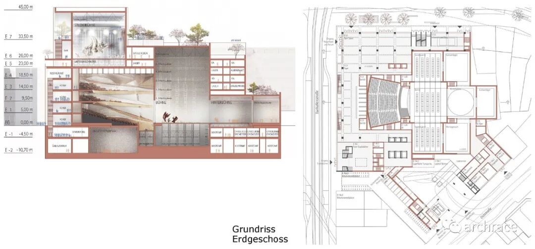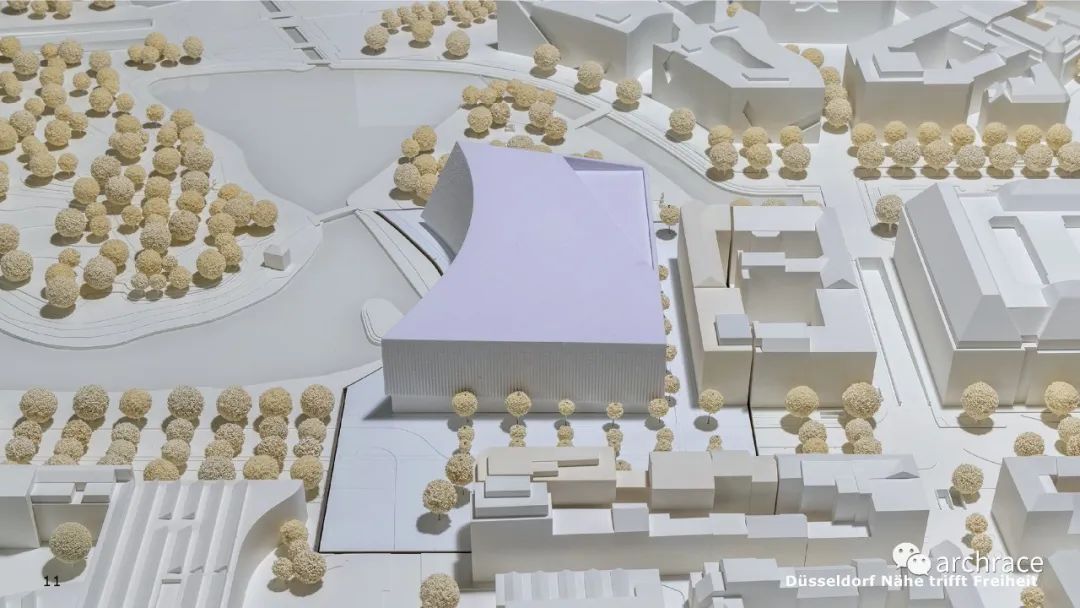 另一个可能的建设用地位于 Am Wehrhahn 大街1号地块,距离旧歌剧院不到1公里,目前是该市的一个购物中心。本次竞赛的任务是展示设计方案在城市发展、开放空间规划和与城市发展概念中所体现的两个地块的潜力。