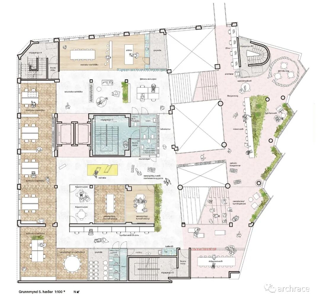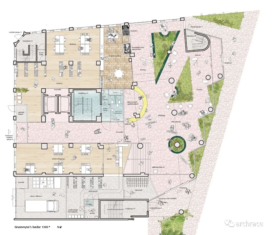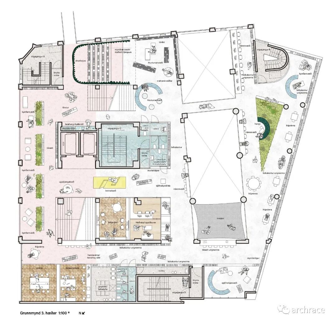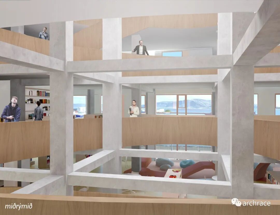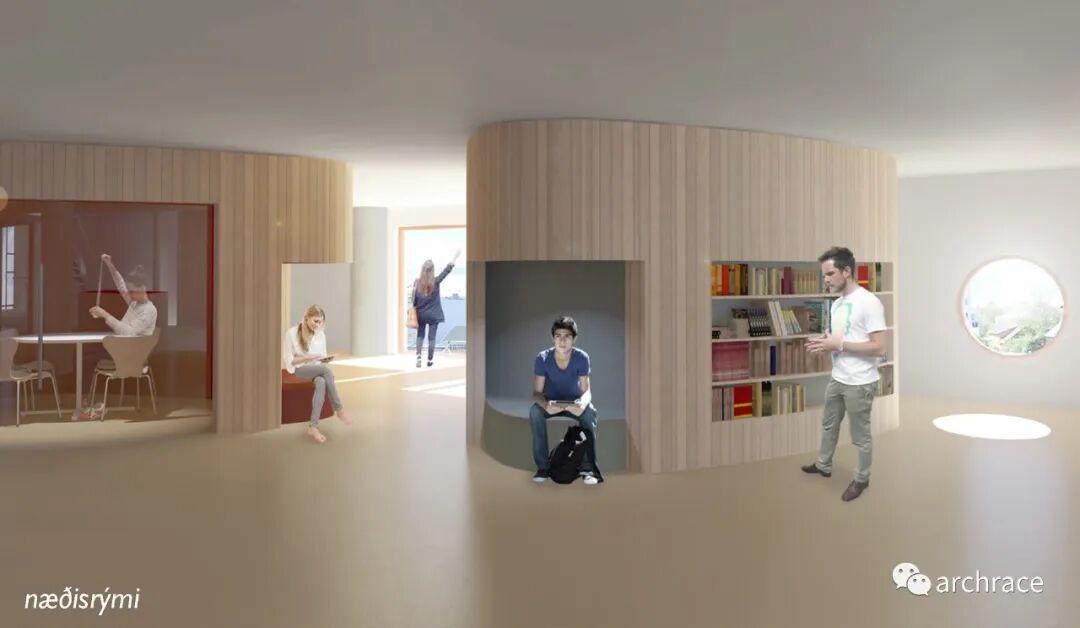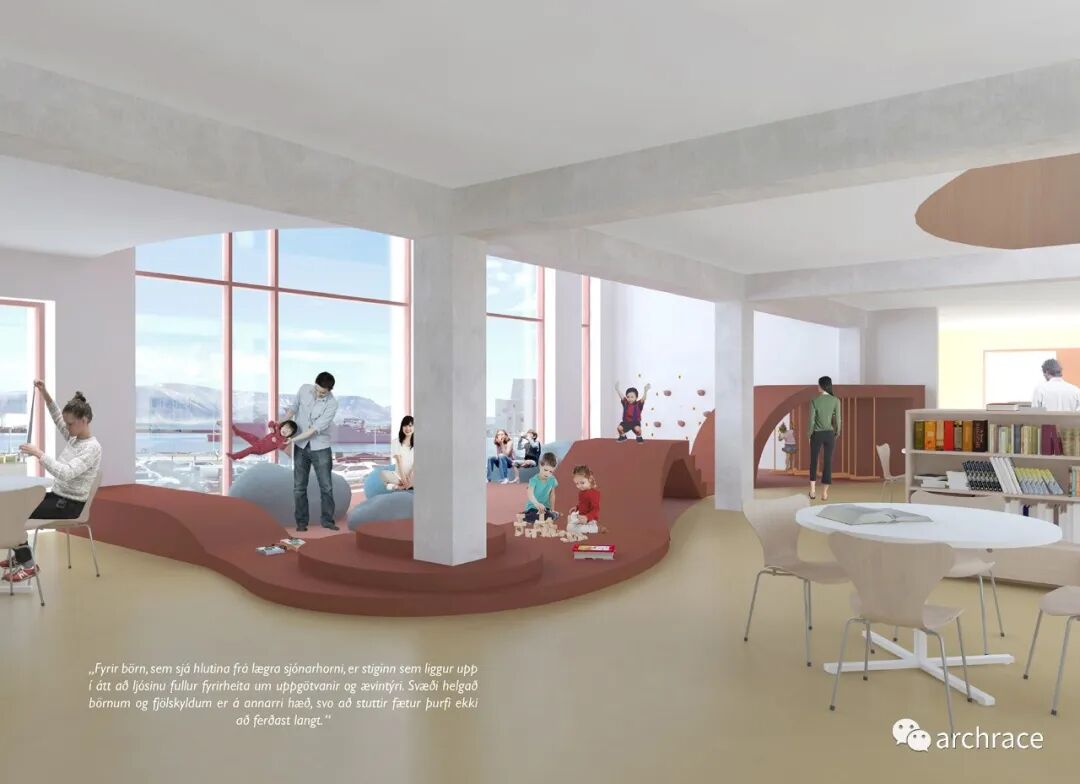 今年11月28日,由三家荷兰建筑事务所 JVST、Inside Outside、hanratharchitect 和冰岛建筑工作室 Kreativa 的设计团队宣布赢得了雷克雅未克中央图书馆改造的设计竞赛。该团队提出了一条穿过现有建筑的通道,以一种有趣的方式引导有着不同目标的游客前往不同的目的地。
