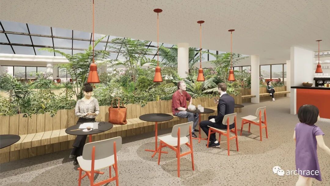 设计团队解释说,这条路线将楼层分为活跃的学习和工作场所以及安静的阅读楼层。路线拾级而上以一个全新的玻璃结构结束。这个玻璃结构作为咖啡馆和礼堂,将成为该地区的新地标。